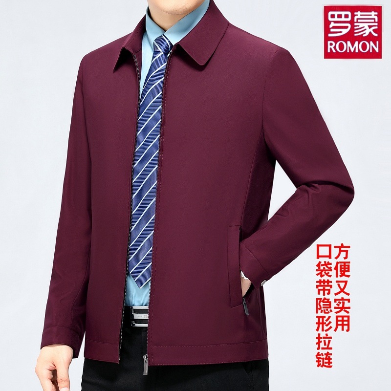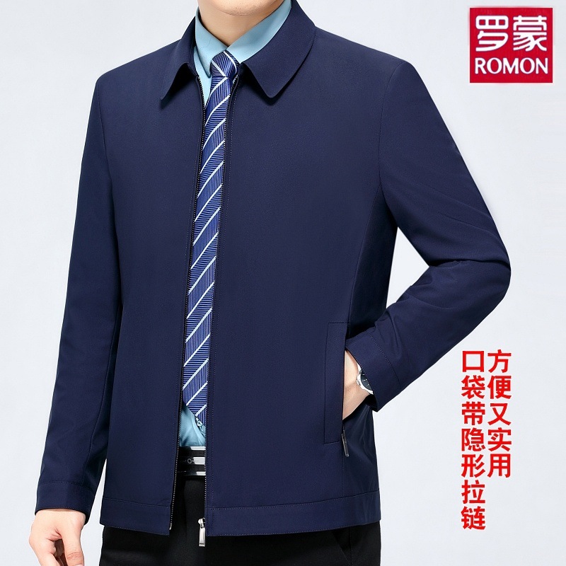 정품 로몬 자켓 남자 100% 뽕나무 실크 봄과 가을 중년 비철 자켓 비즈니스 캐주얼 아빠 자켓