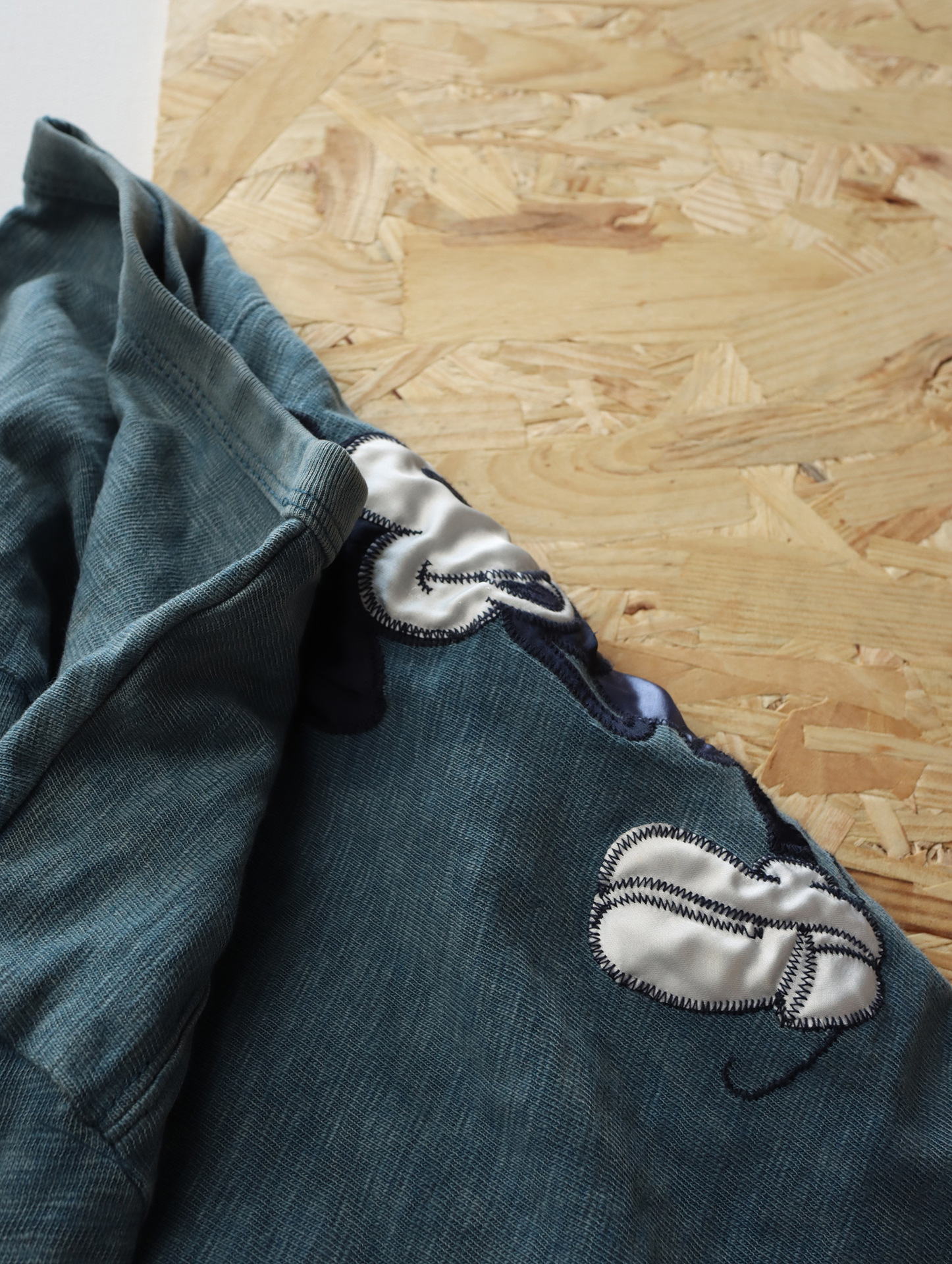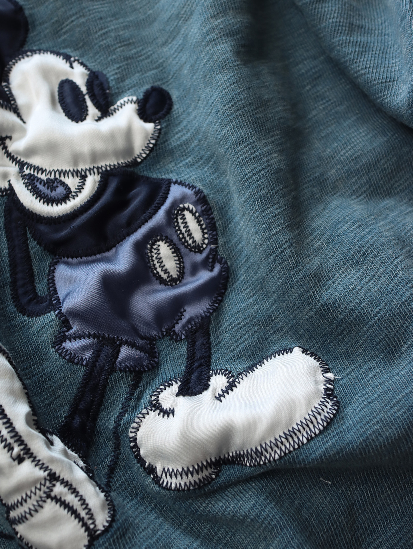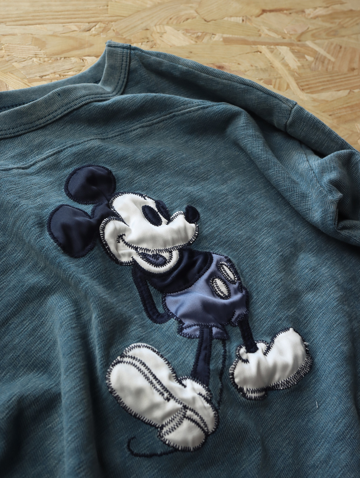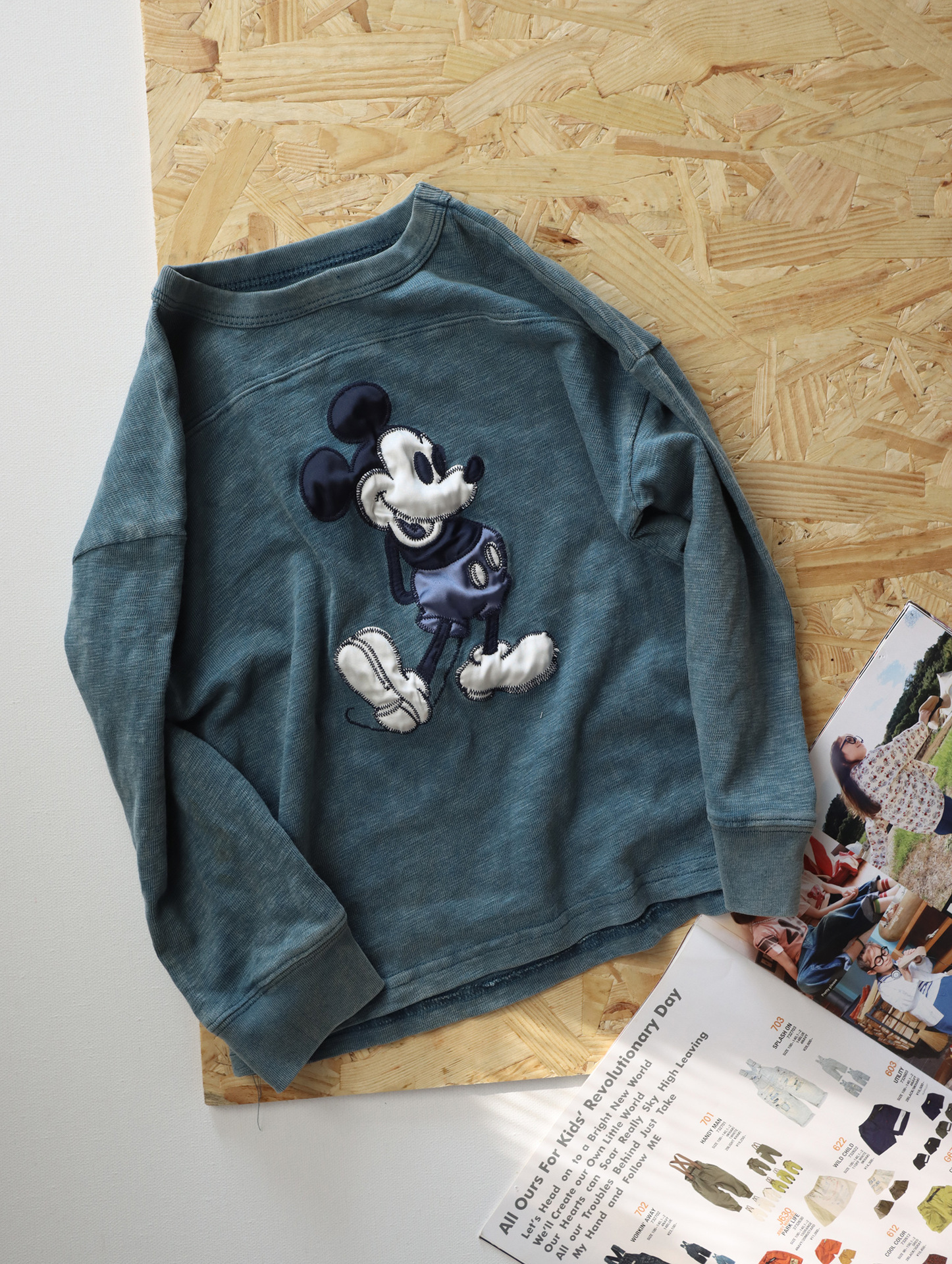 • 레트로 블루 워싱 디스트레스드 미키 긴팔