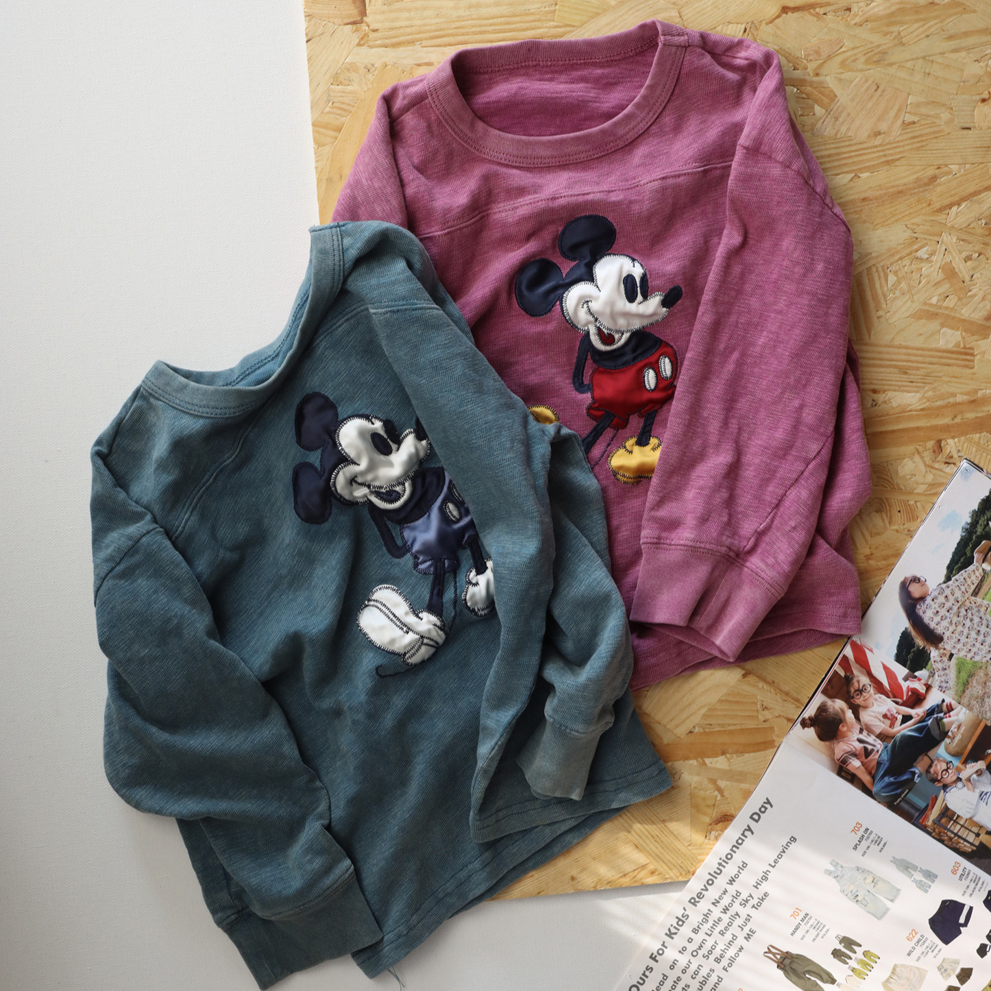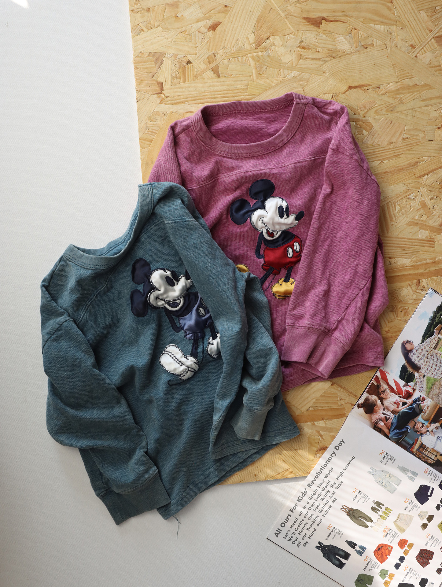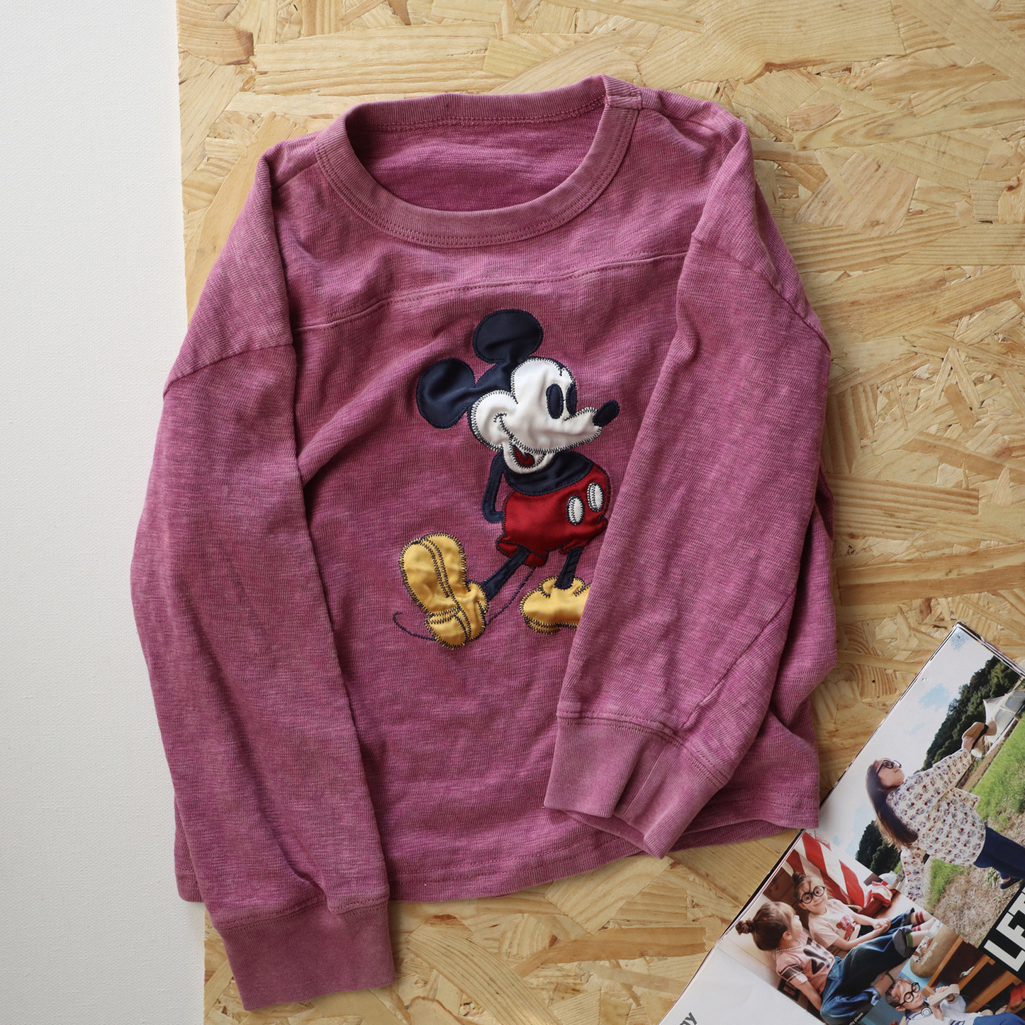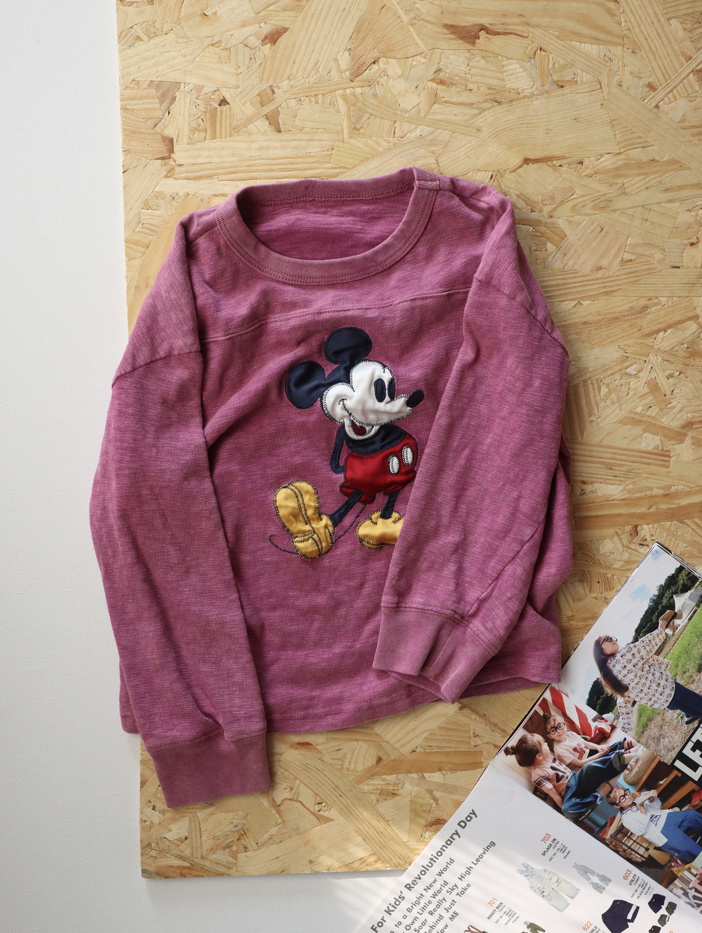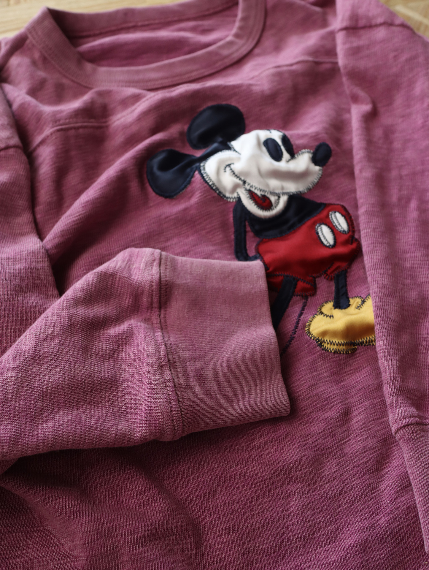 • 레트로 퍼플 워싱 디스트레스드 미키 긴팔