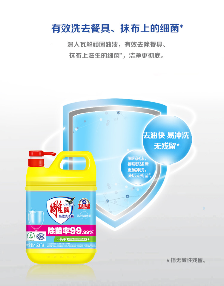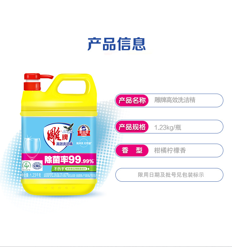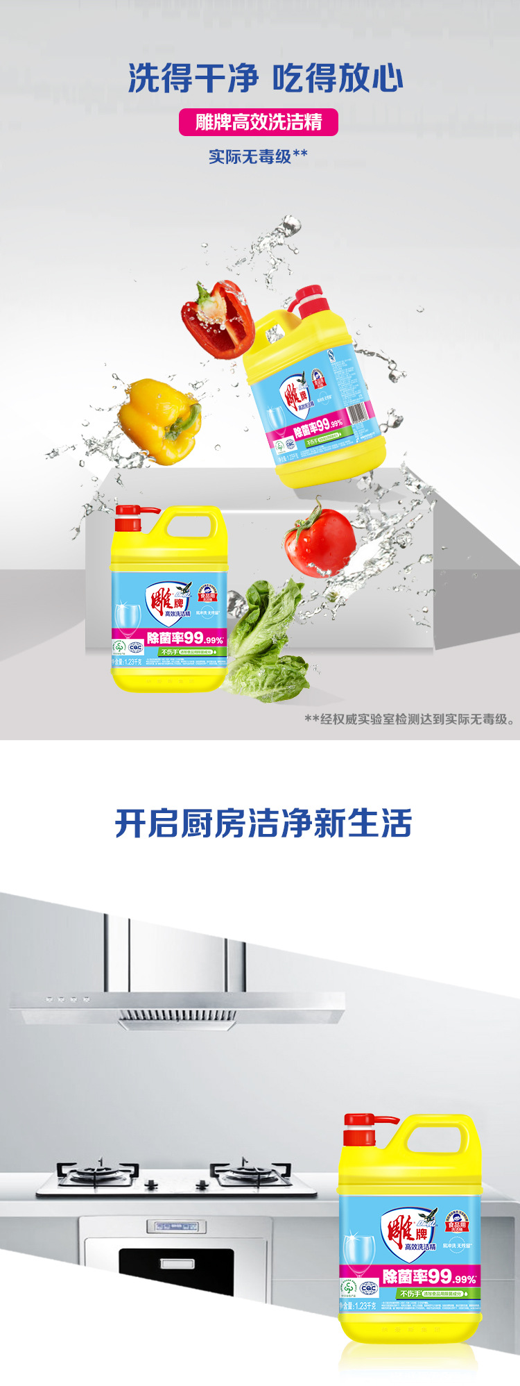 Diaobai 세제 고효율 Degerm 제거 1.23kg 병 과일 및 야채 용 가정용 탈지 세제