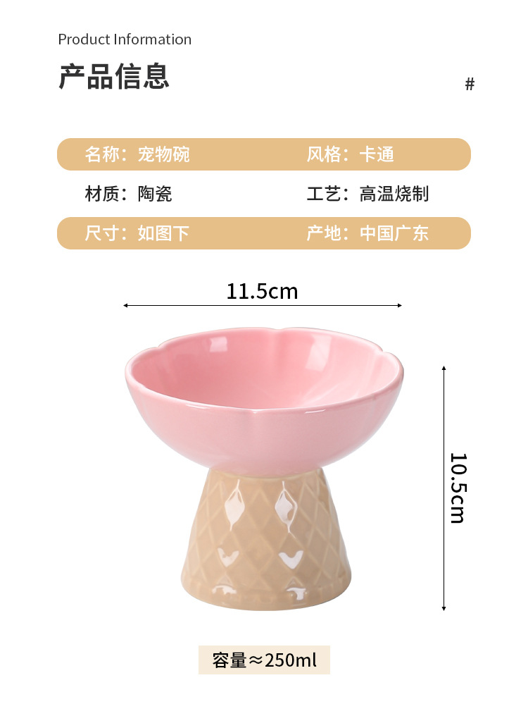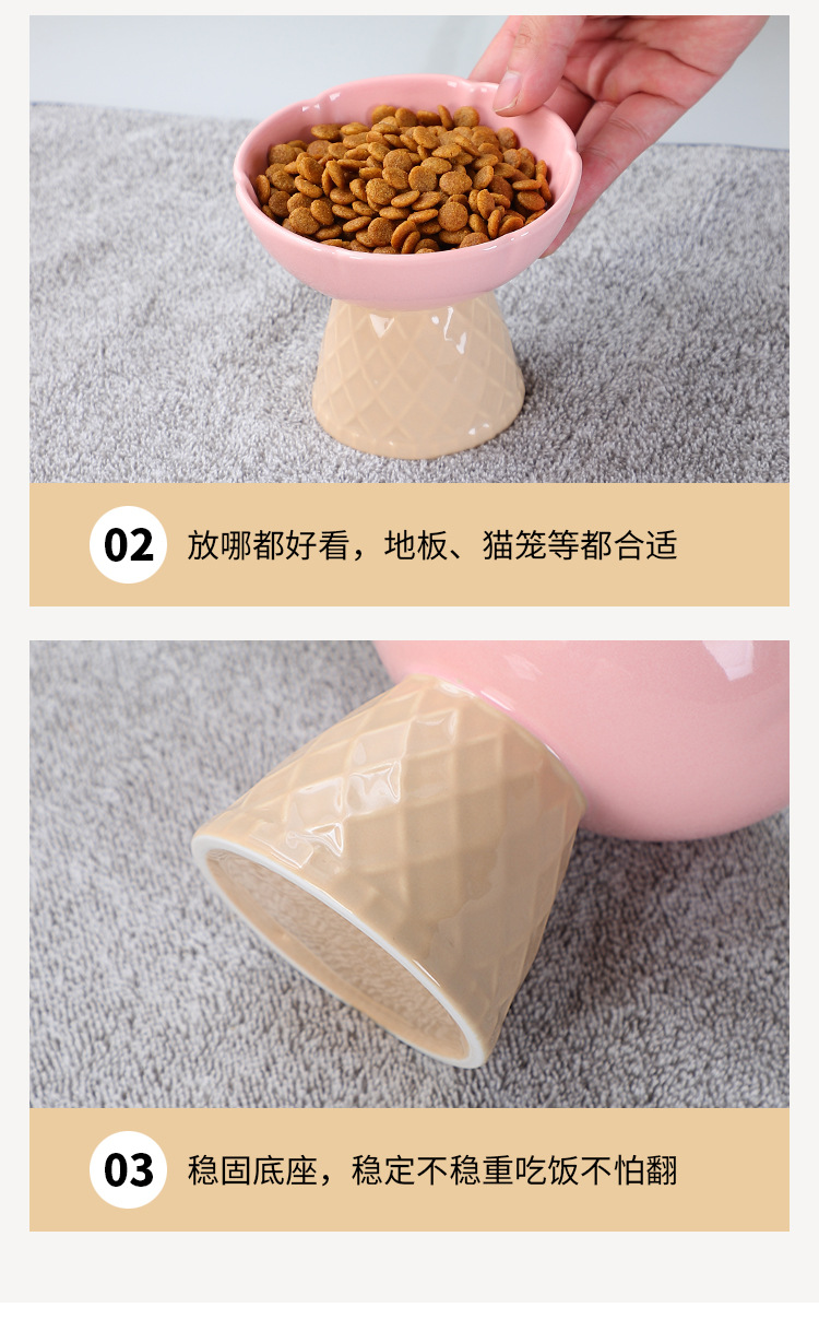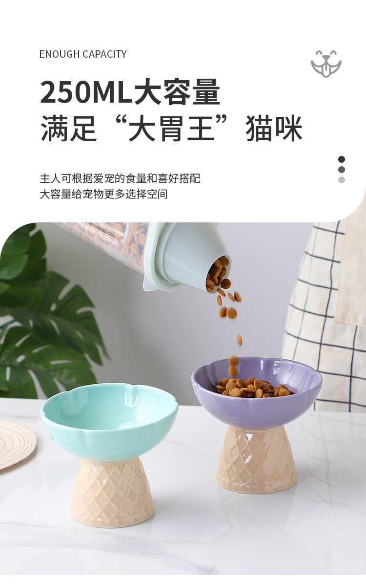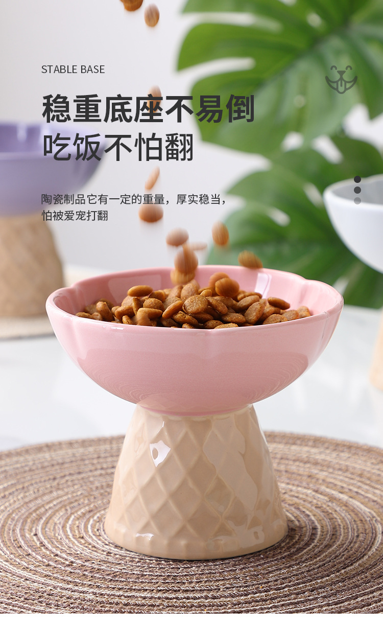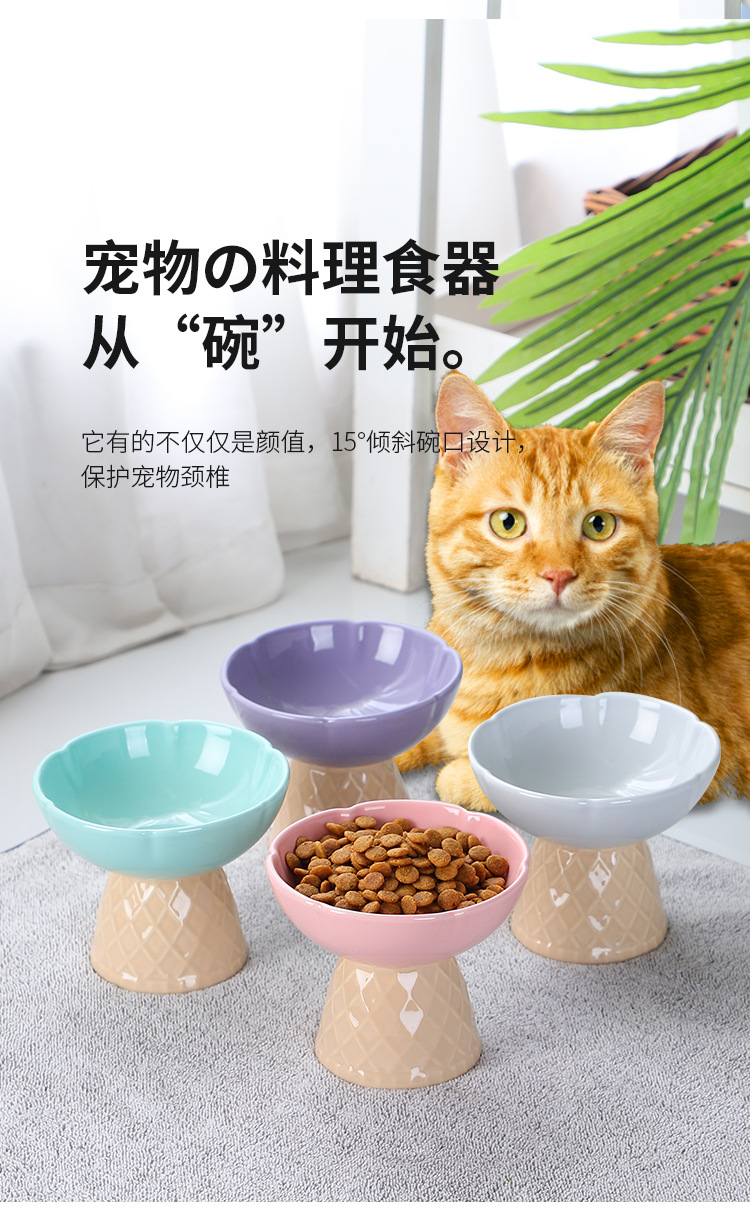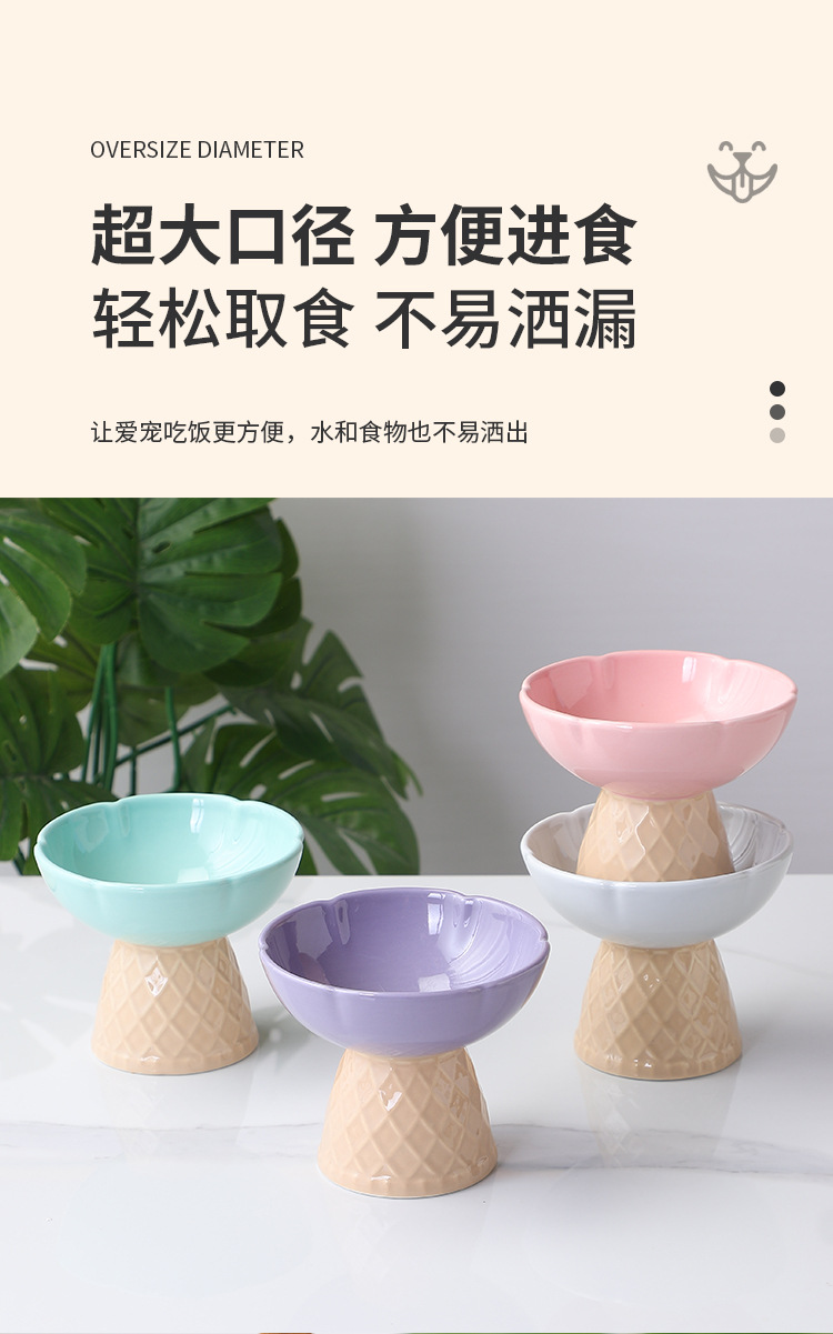 고양이 세라믹 애완 동물 그릇 아이스크림 고양이 그릇 거부 검은 턱 안티 티핑 키 고양이 먹이 그릇 보호 자궁 경부 분지스토어 가기