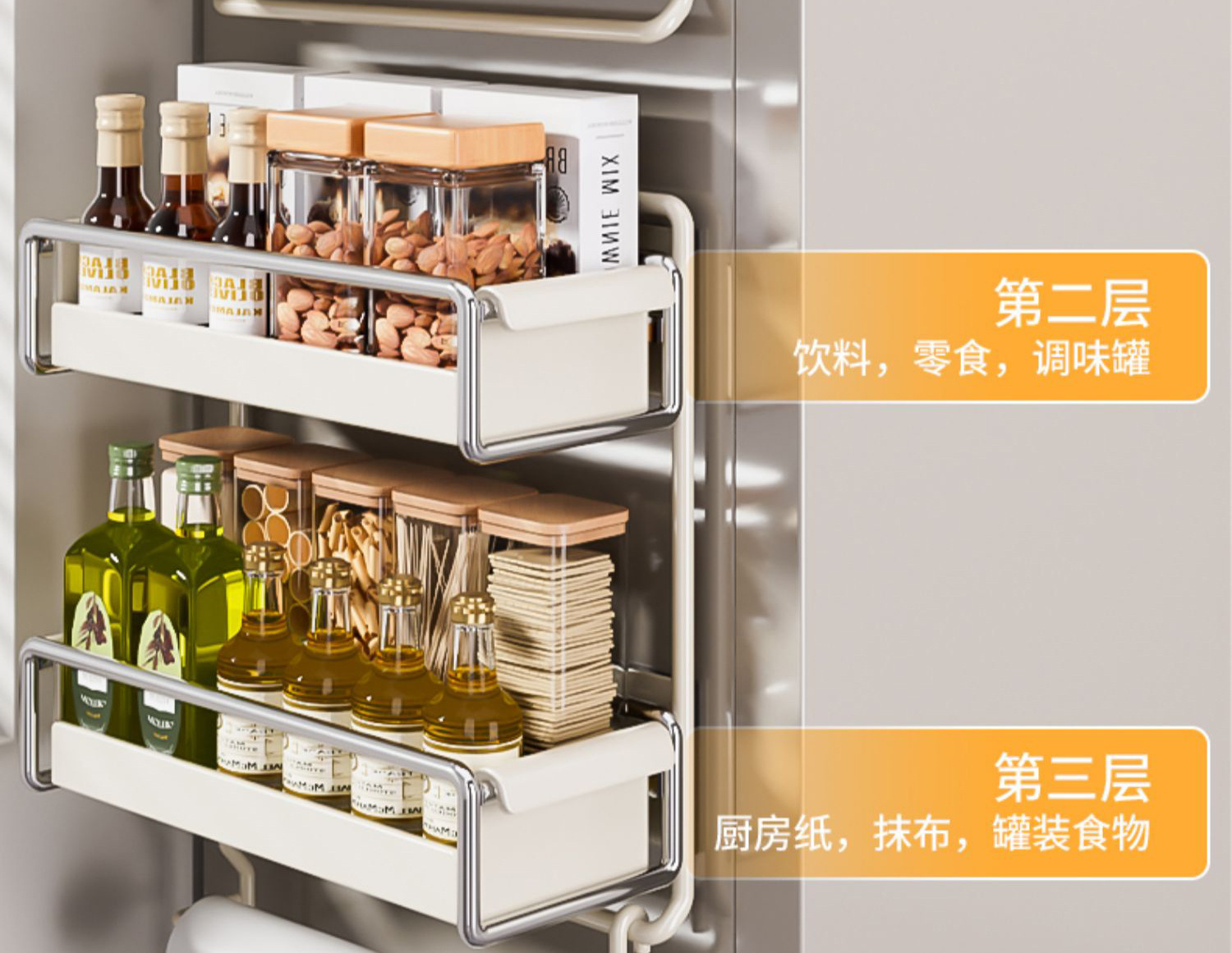 자기 흡입 굵은 냉장고 저장 랙 보존 필름 걸이 주방 사이드 풀아웃 캐비닛 갭 마무리 측면 저장 인공물스토어 가기