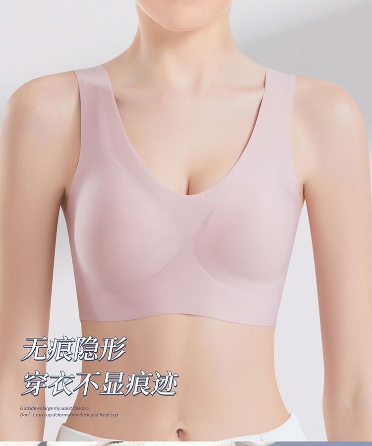 Traceless 고정 컵 스포츠 속옷 여성의 큰 가슴은 작은 모여있는 Parammary 플러스 사이즈 잠자는 조끼 스타일 얇은 브래지어를 보여줍니다.스토어 가기