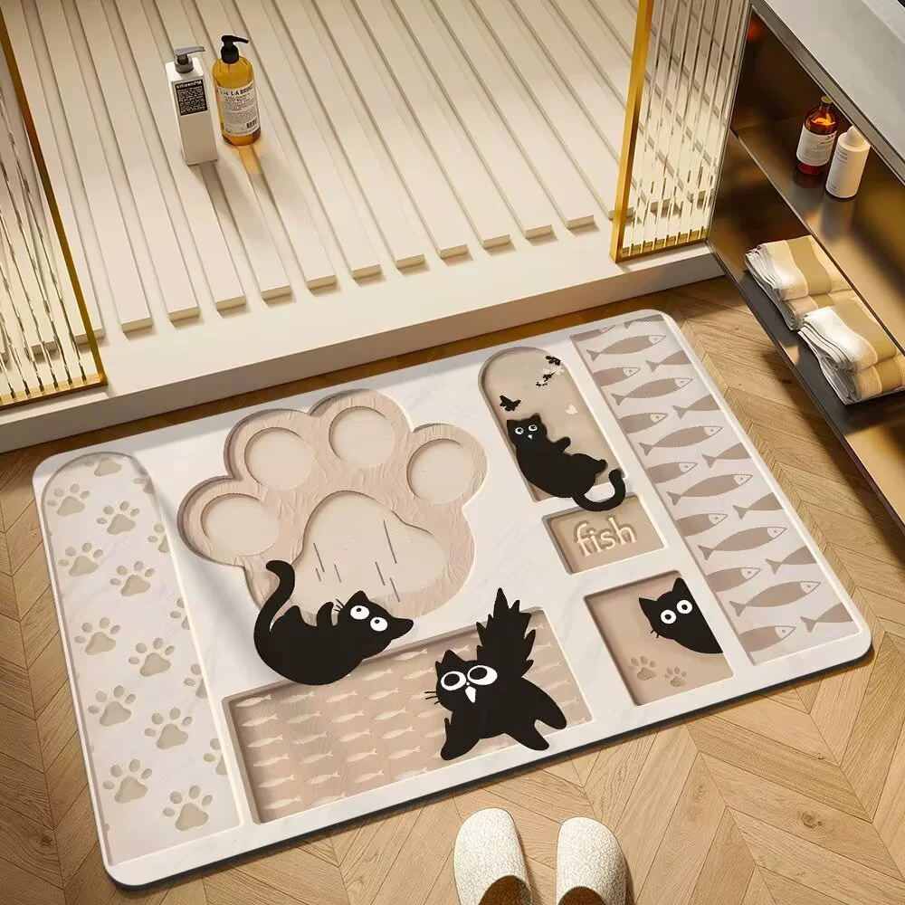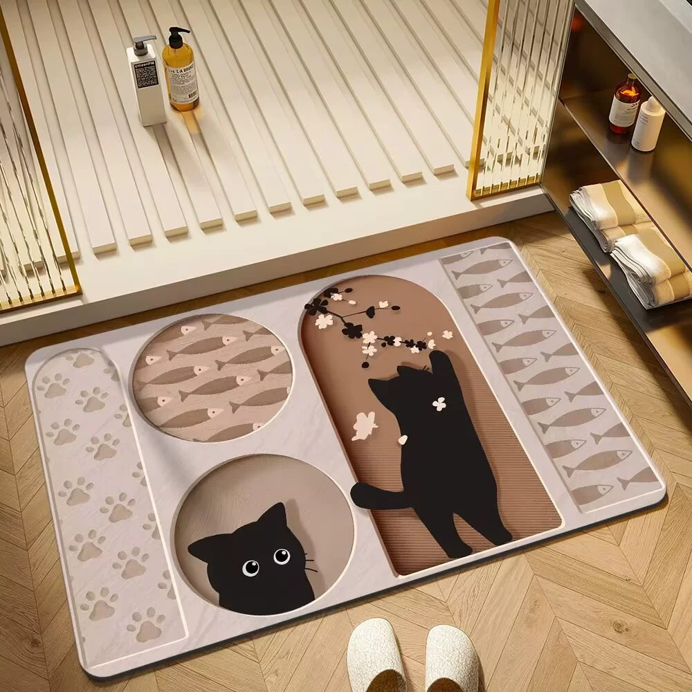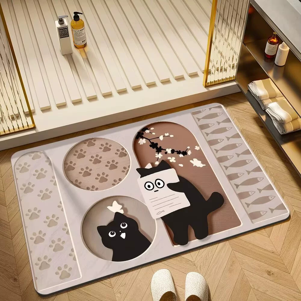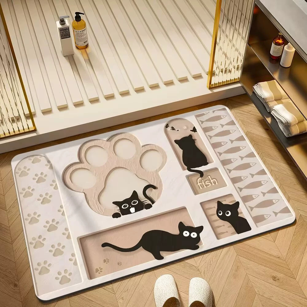 만화 귀여운 새끼 고양이 원자로 진흙 매트 욕실 흡수성 미끄럼 방지 빠른 건조 발 매트 주방 단열 두꺼운 장소