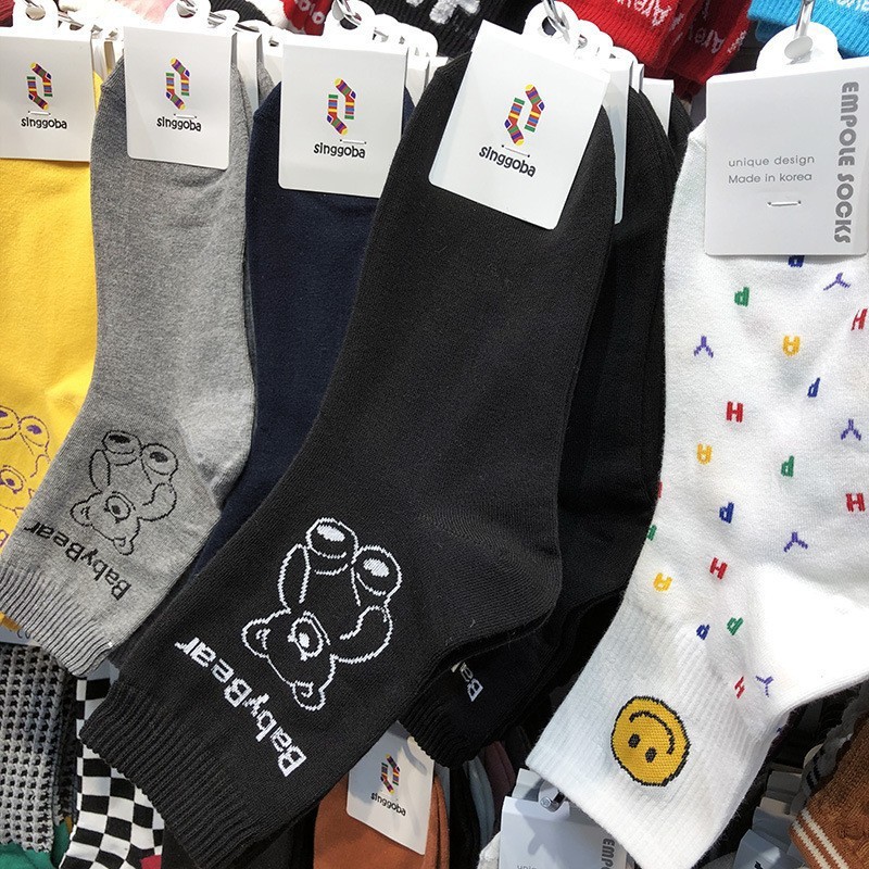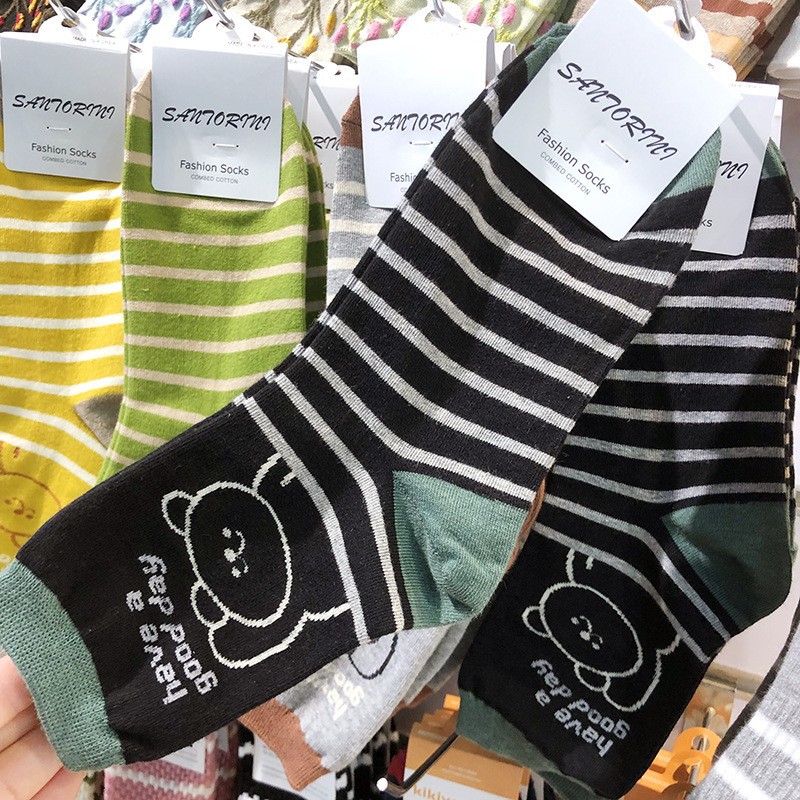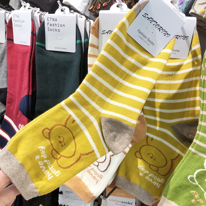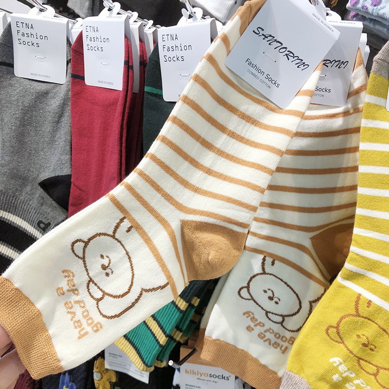 한국 수입 ETNA 양말 스틱 그림 곰 만화 소녀 양말 줄무늬 제어 튜브 일본 여자 양말스토어 가기