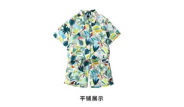 어린이 세트 2025 여름 새로운 인쇄 패션 아동복 소년 반팔 셔츠 세트 트렌디 한 여름 착용