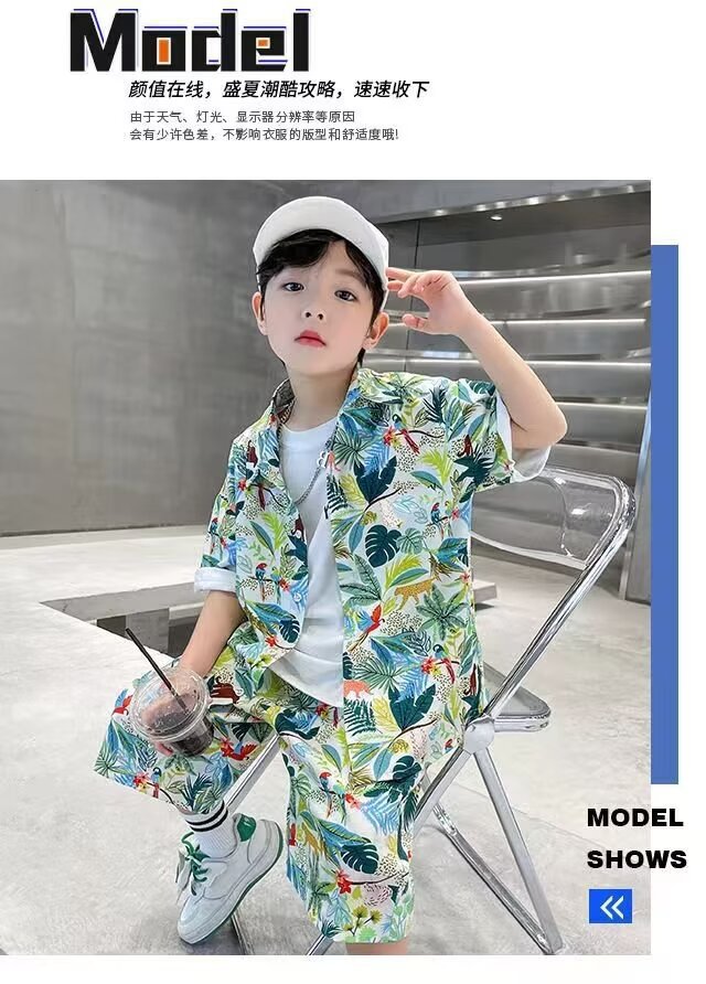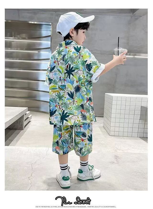 어린이 세트 2025 여름 새로운 인쇄 패션 아동복 소년 반팔 셔츠 세트 트렌디 한 여름 착용스토어 가기