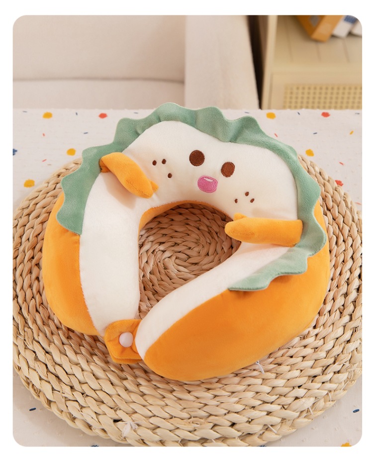 ✅자동차 여행을위한 귀여운 토스트 빵 U 자형 목 베개 목 보호 휴대용 U 자형 베개 머리 자궁 경부 베개 여성용