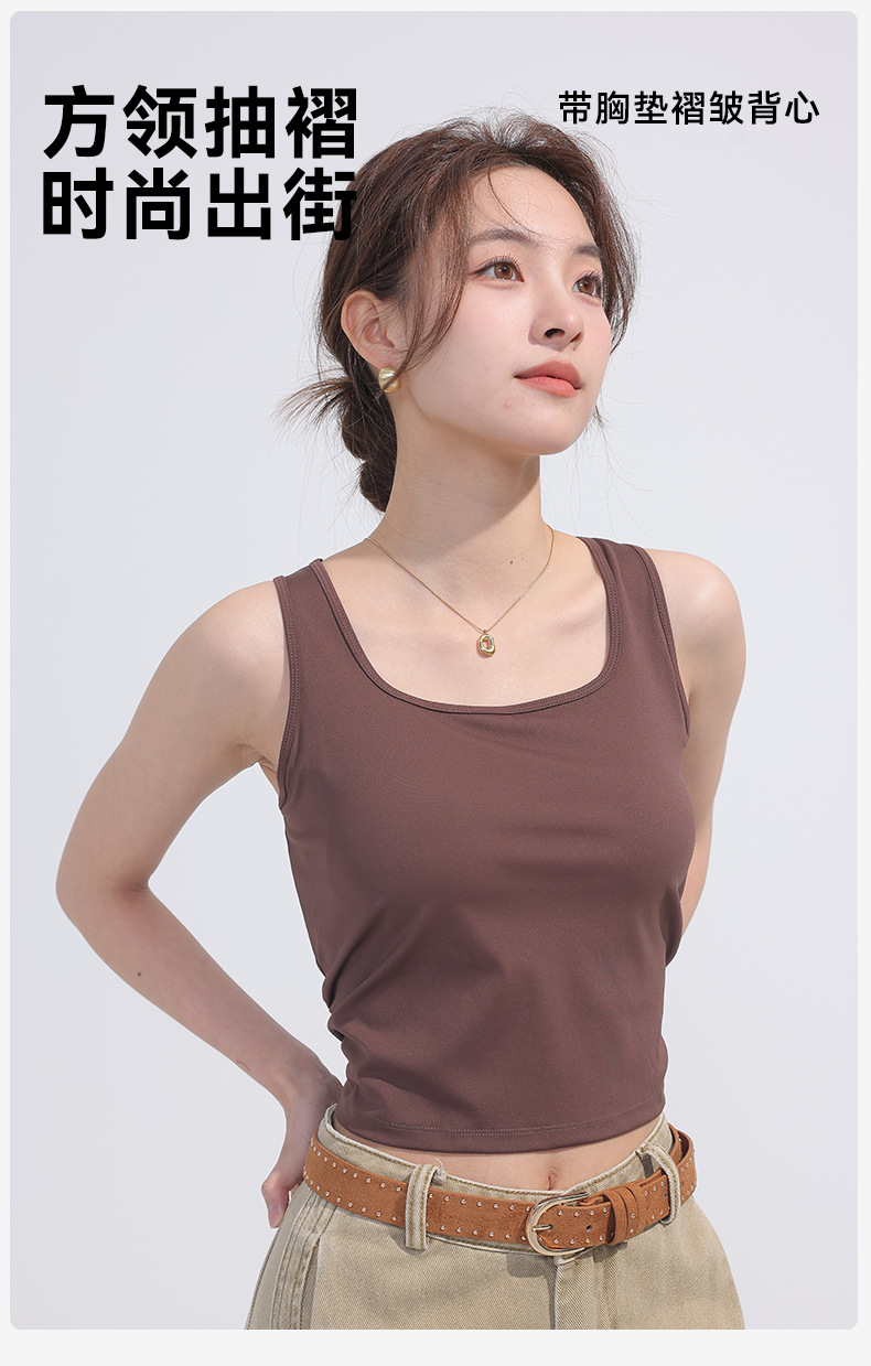 스퀘어 칼라 카미 솔 여성 내부 입기 외부 착용 2025 년 여름 새로운 민소매 슬림 핏 안티 워킹 베이스 탑