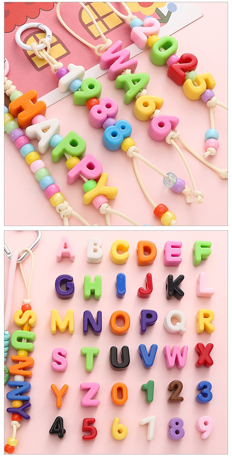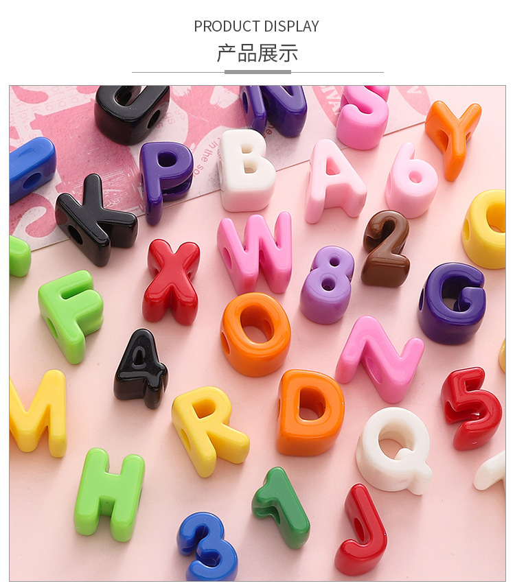 【0.5kg 팩】컬러 아크릴 대형 구멍 숫자 및 문자 비즈 DIY 수제 비즈 팔찌 액세서리