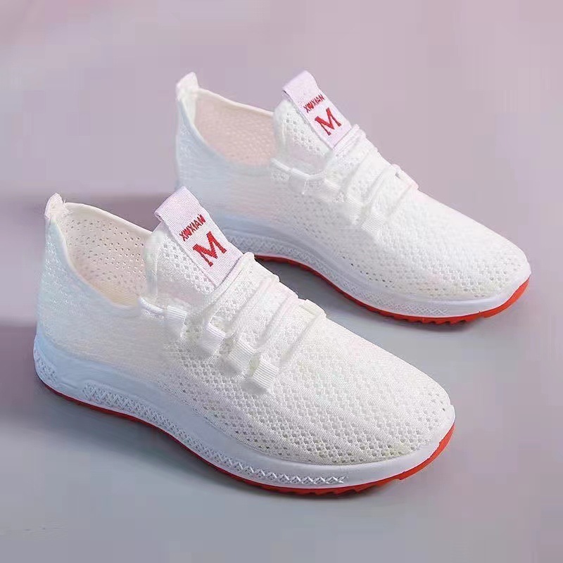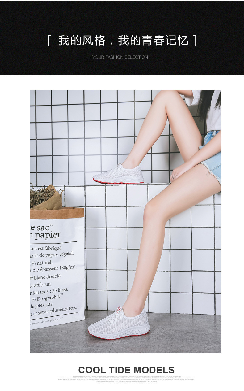 봄과 여름 새로운 여성 스포츠 메쉬 캐주얼 운동화 플랫폼 워킹 슈즈 소프트 단독 편안한 레이스 업 슈즈 화이트 메쉬 슈즈스토어 가기