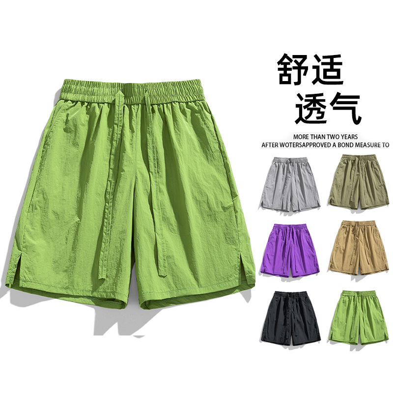 무료 배송 2025 여름 새로운 아이스 실크 작업복 반바지 남자와 여자의 유행 느슨한 통기성 빠른 건조 스포츠 바지 올매치