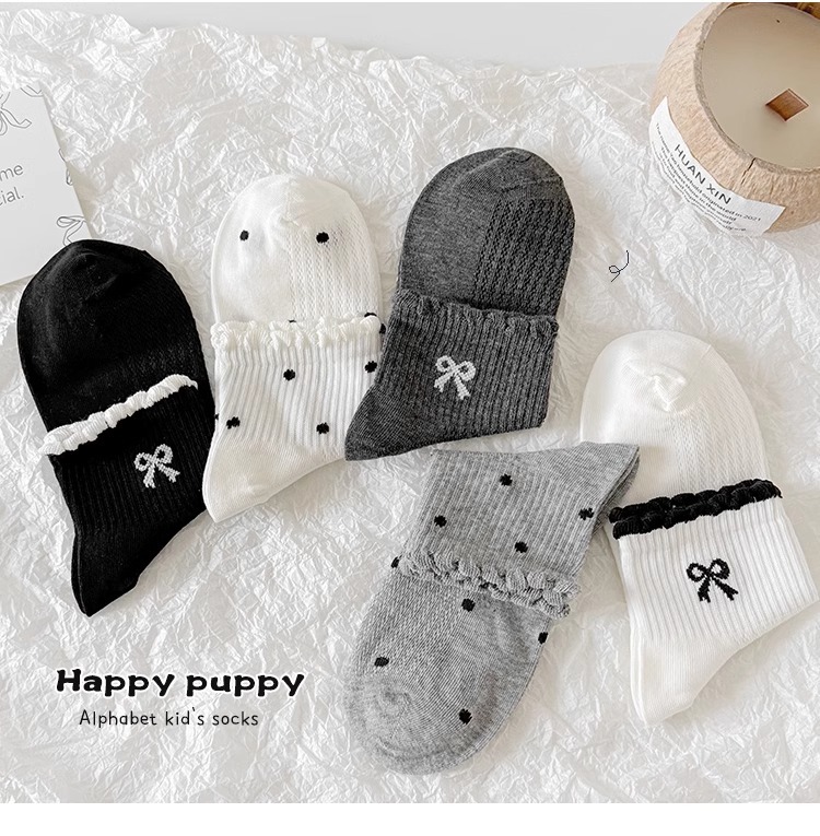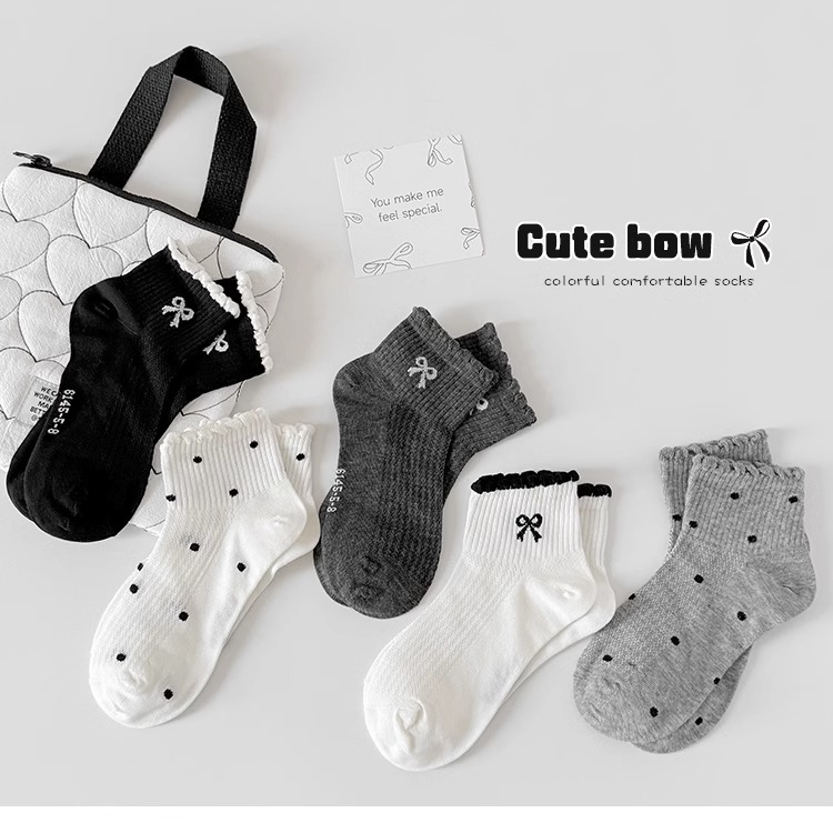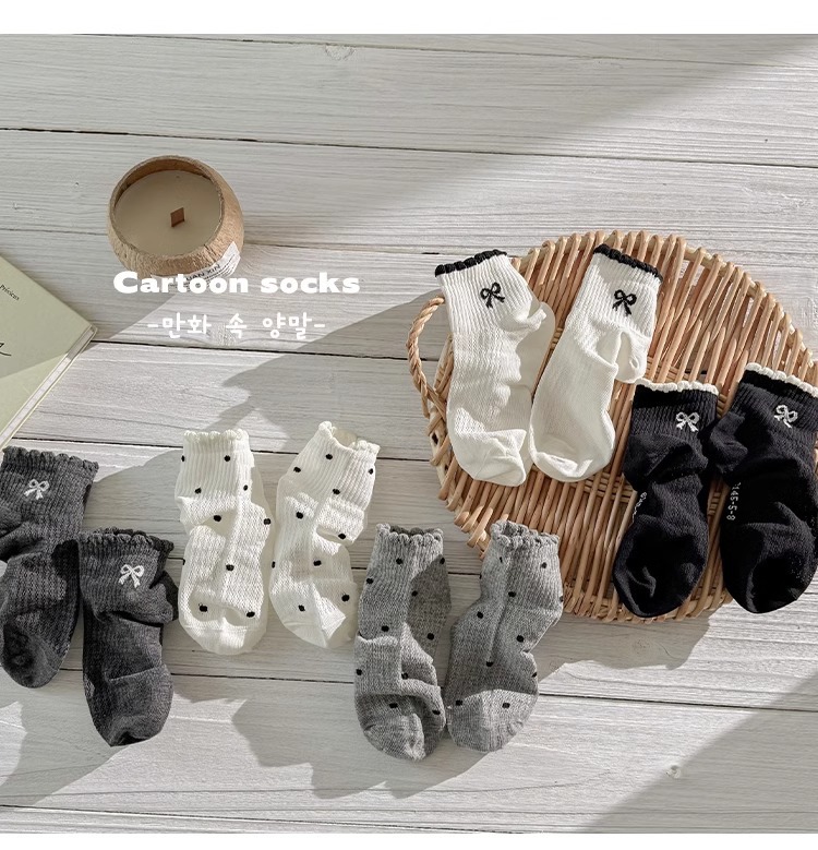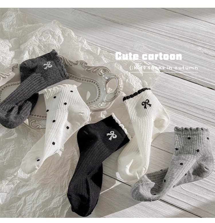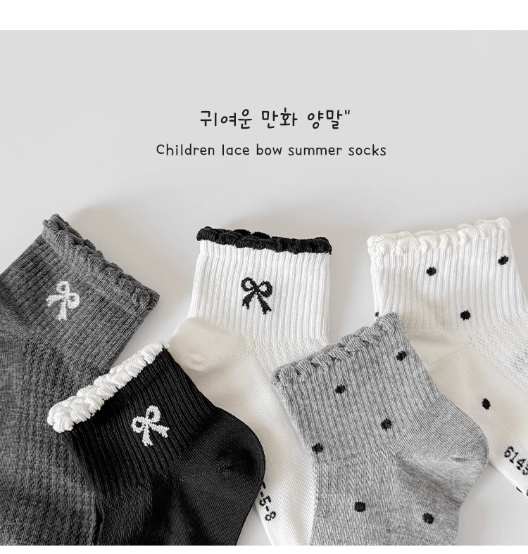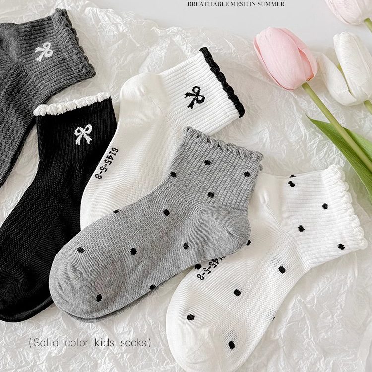 소녀 양말 봄과 여름 얇은 메쉬 미드 튜브 양말 어린이 한국 스타일 Ins Bow Poll Dot 공주 면 양말 여름