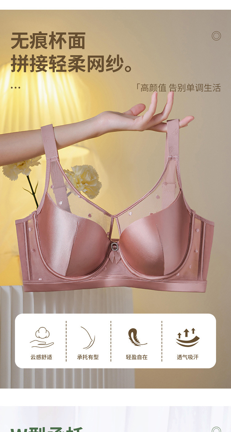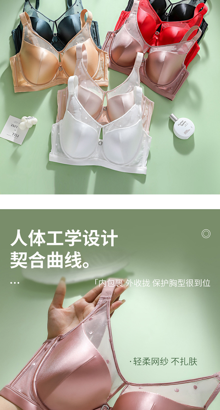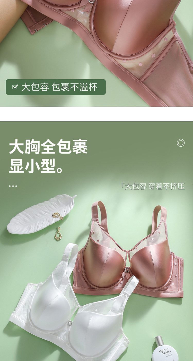 유럽과 미국의 국경 대외 무역 부드러운 부드러운 강철 반지 섹시한 큰 가슴은 작은 수집 조정 가능한 크기의 브래지어 속옷을 보여줍니다