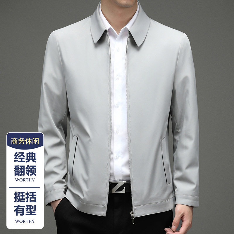 春秋季高端夹克男士翻领新款中年爸爸装商务休闲外套男行政干部装