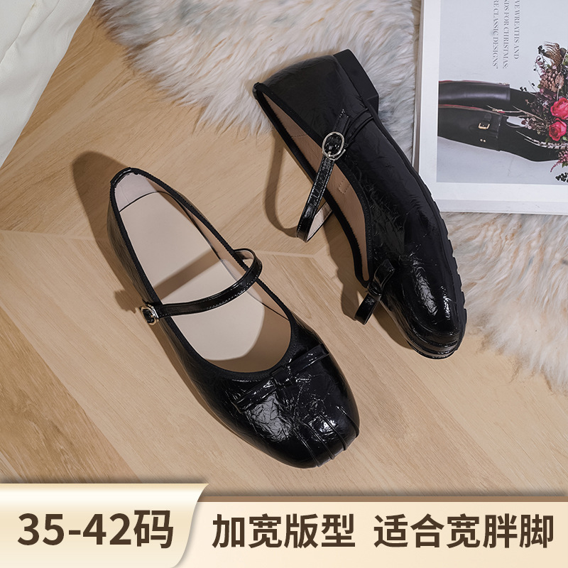 넓은 뚱뚱한 발 플러스 사이즈 콩 신발 활 메리 제인 신발 여성 두꺼운 힐 스퀘어 발가락 복고풍 스타일 고급 플랫 신발