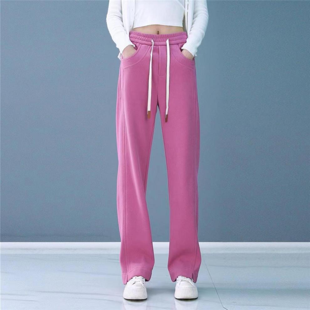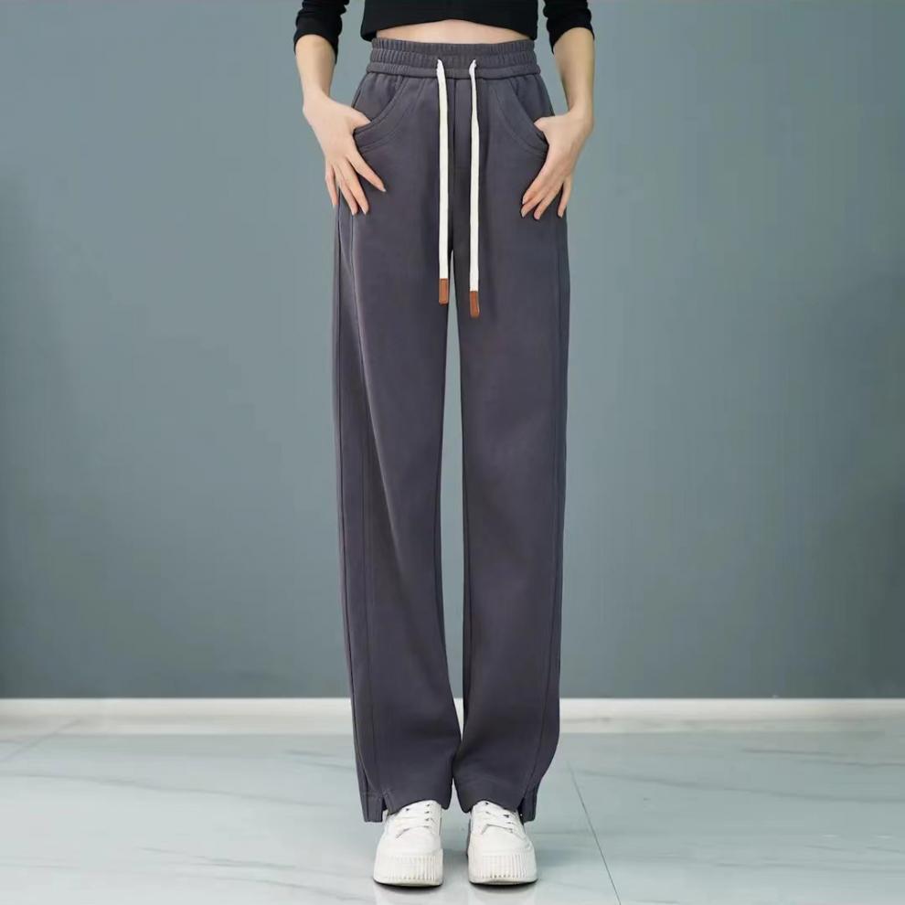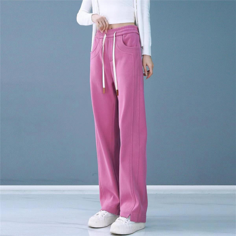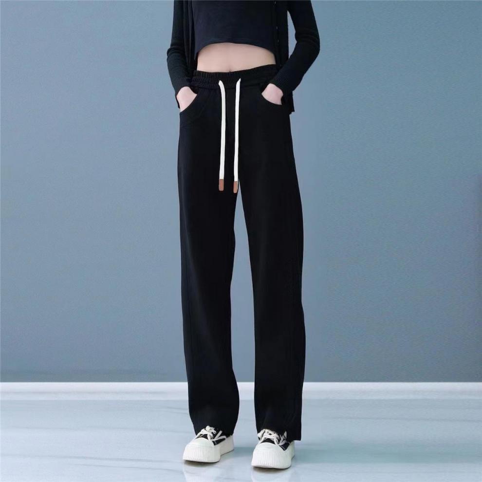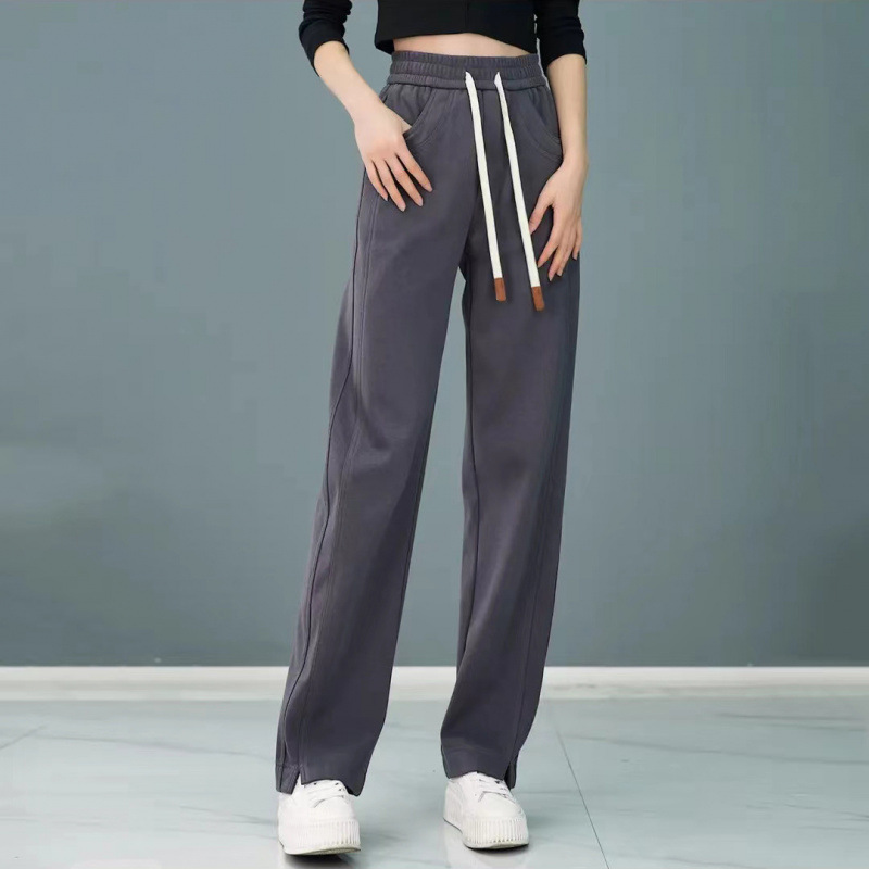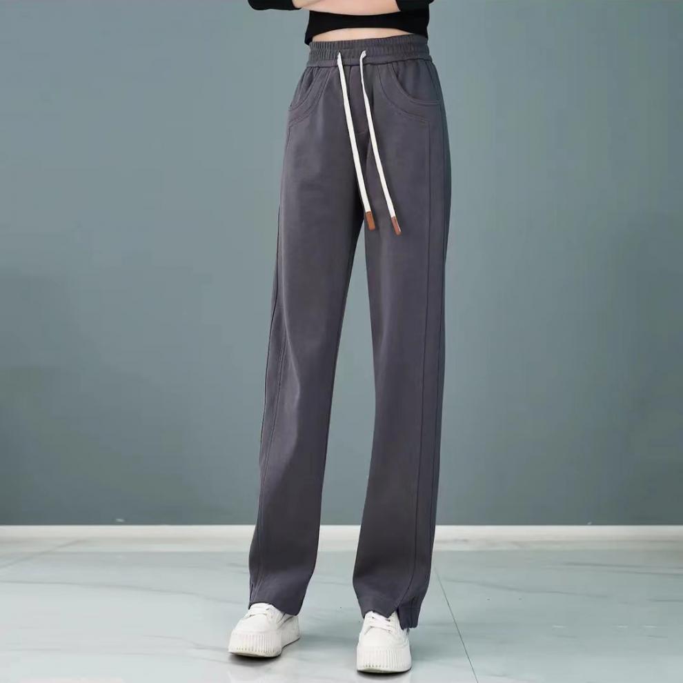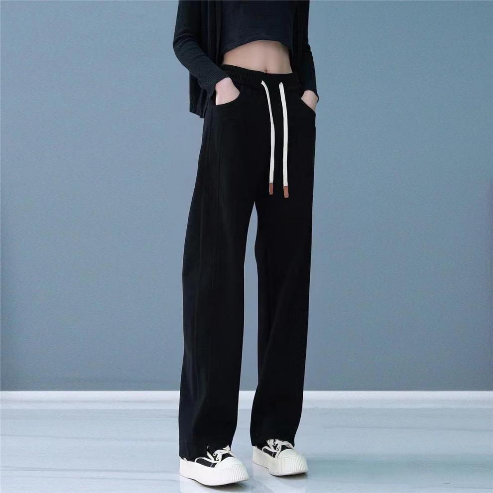 좁은 넓은 다리 바지 여자 2025 년 봄과 가을 새로운 높은 허리 느슨한 슬리밍 올 매치 드레인 스트레이트 레그 스포츠 캐주얼 바지