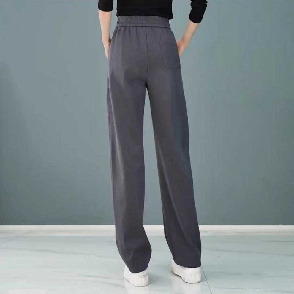 좁은 넓은 다리 바지 여자 2025 년 봄과 가을 새로운 높은 허리 느슨한 슬리밍 올 매치 드레인 스트레이트 레그 스포츠 캐주얼 바지스토어 가기