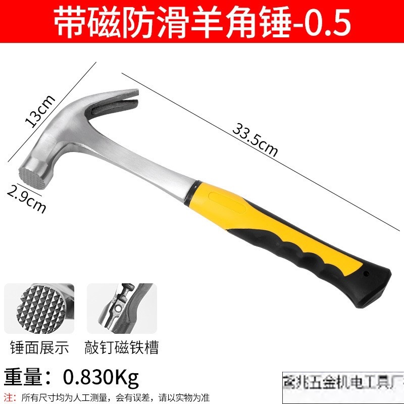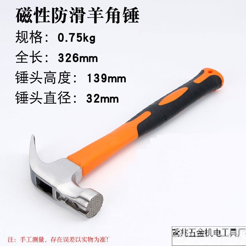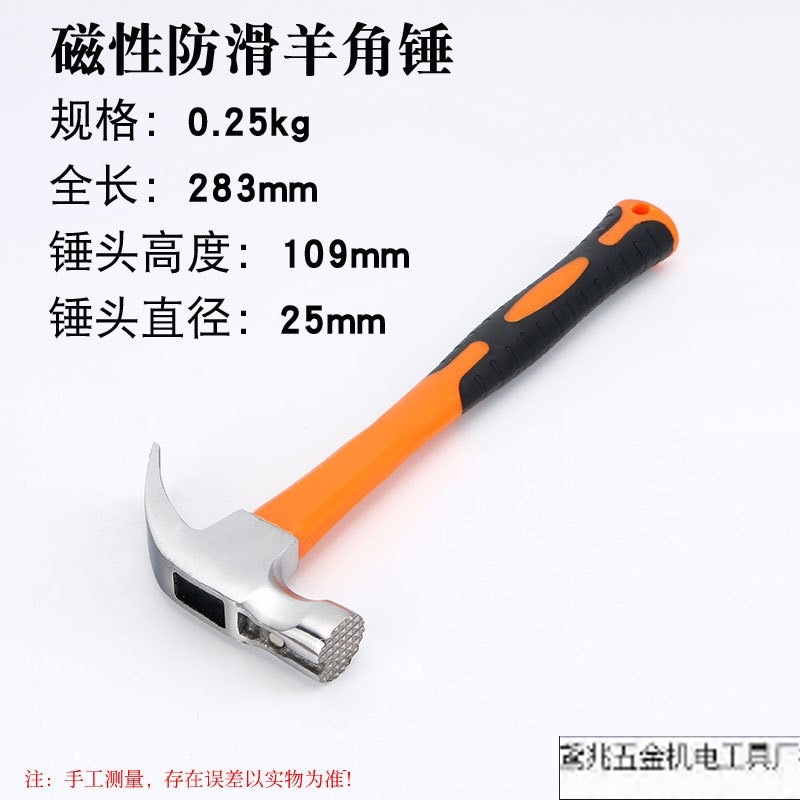 • 고무 처리된 미끄럼 방지 자석 클로 해머 0.5