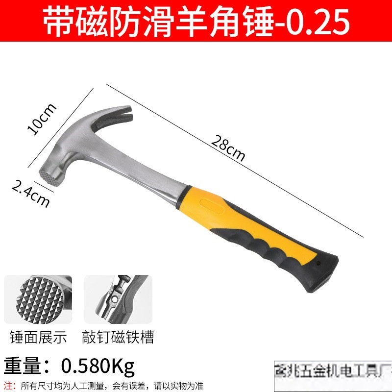 • 고무 처리된 미끄럼 방지 자석 클로 해머 0.25