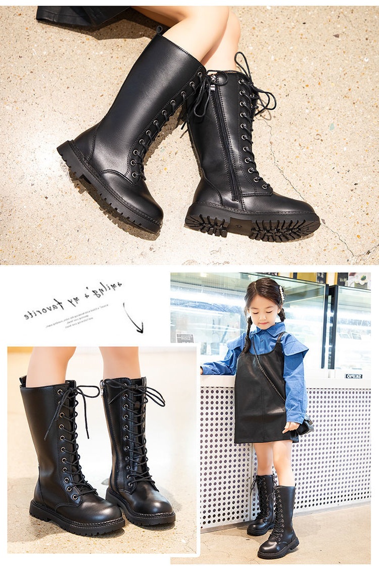 한국판 여자 마틴 부츠 2022 가을과 겨울 새로운 어린이 부츠 소녀 부츠 기모 큰 어린이를위한 높은 가죽 부츠