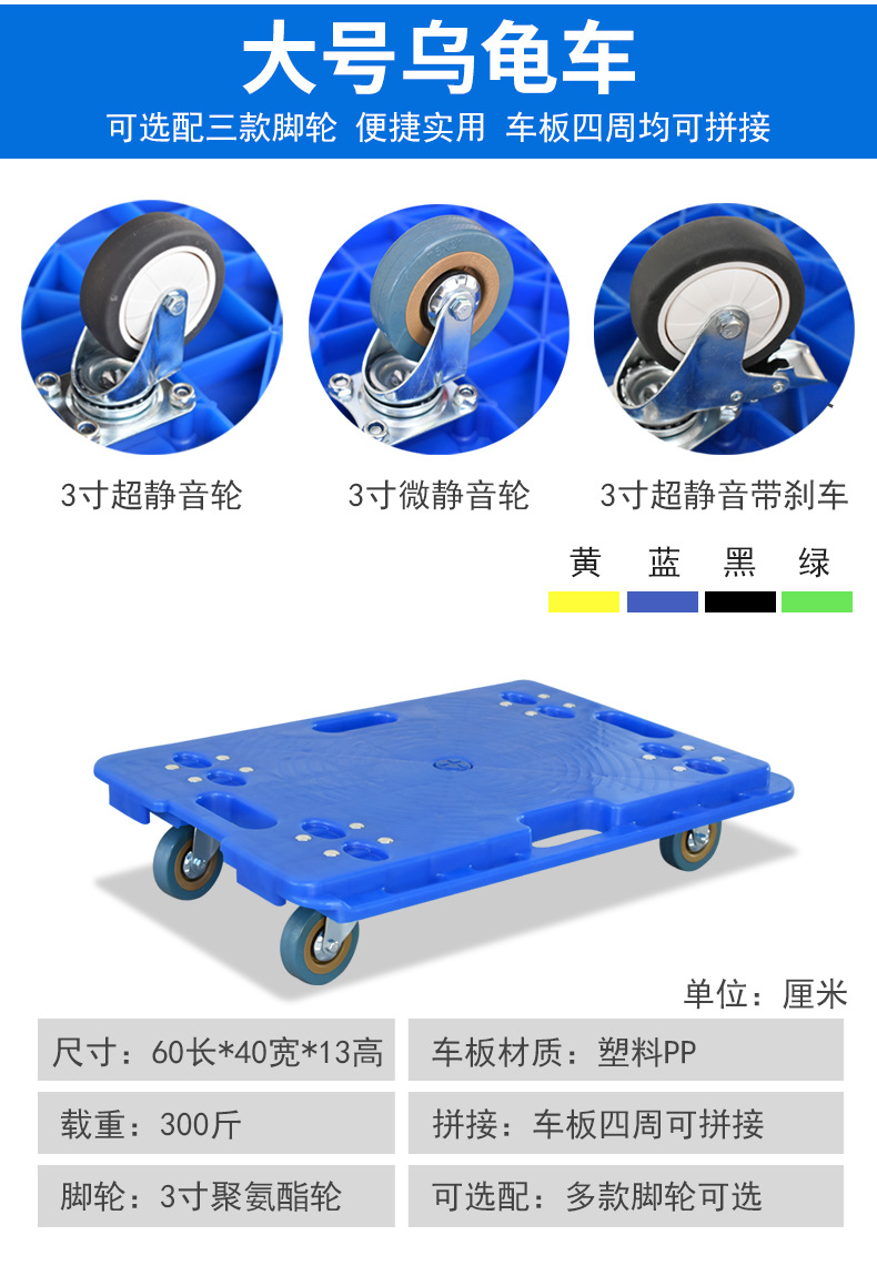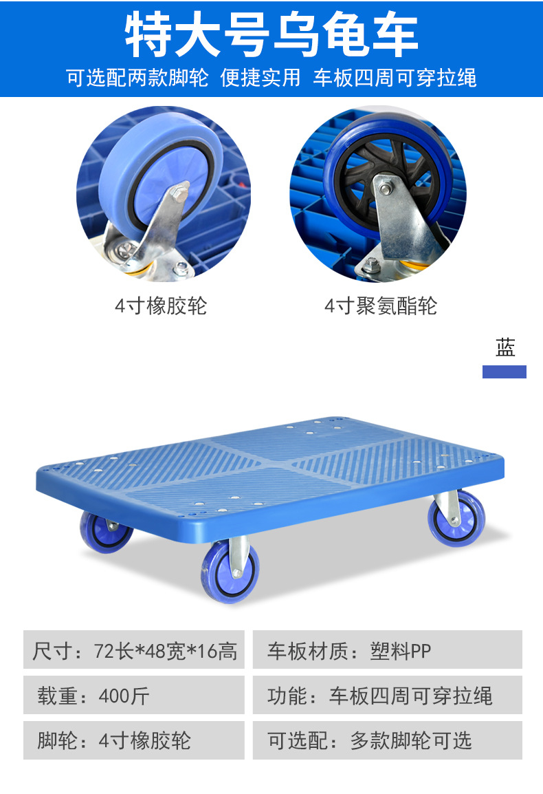 플라스틱 거북 자동차 플랫 카트 운반 상품 트레일러 모바일 옷장 가구 세탁기 냉장고 화분 직접 판매스토어 가기