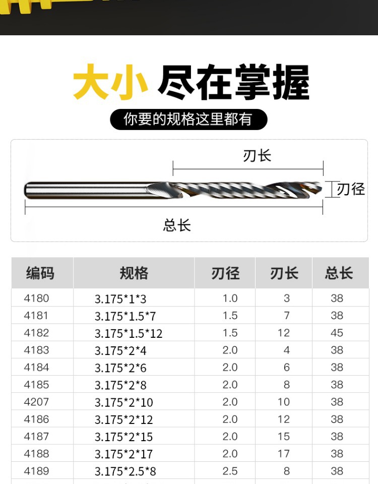 M & M & 3.175 단일 가장자리 나선형 밀링 커터 아크릴 광고 컴퓨터 수치 제어 조각 기계 커터 PVC 조각 커터