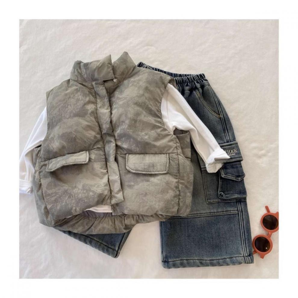 봄 2025 부드러운 데님 바지 새로운 한국 스타일 소년 및 어린이 봄 및 가을 바지 느슨한 작업복 넓은 다리 바지스토어 가기