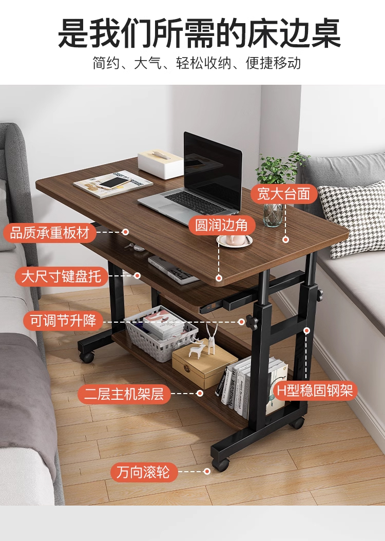침대 옆 테이블 간단한 움직일 수있는 작은 테이블 침실 홈 학생 책상 침대 리프팅 기숙사 게으른 컴퓨터 책상
