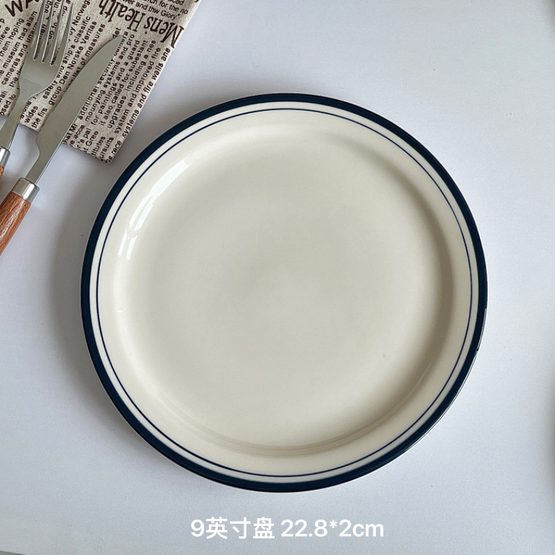 빈티지 플랫 플레이트 Ins 세라믹 레드 엣지 플레이트 웨스턴 스테이크 라운드 얕은 플레이트 골동품 가정용 9 인치 접시스토어 가기