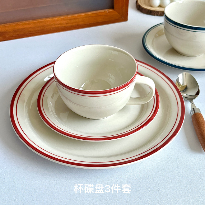 • 레트로 레드 컵과 접시 3종 세트✓⚑