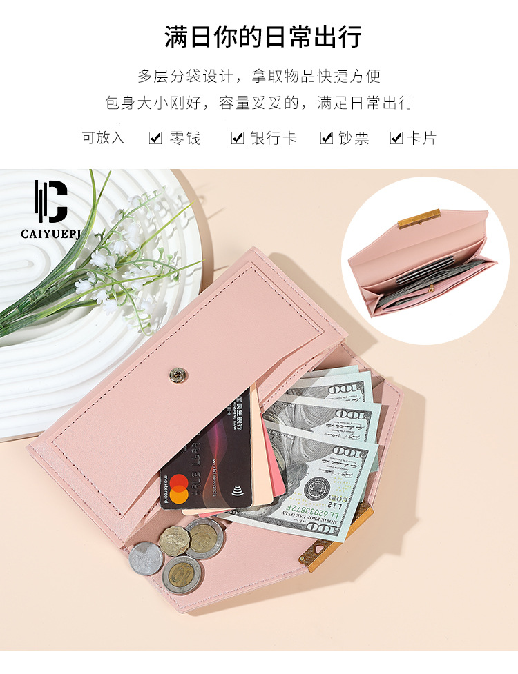 월렛 크로스 보더 새로운 여성 한국 스타일 트렌디 긴 작은 신선한 다기능 버클 일본과 한국 스타일 레트로 얇은 동전 지갑