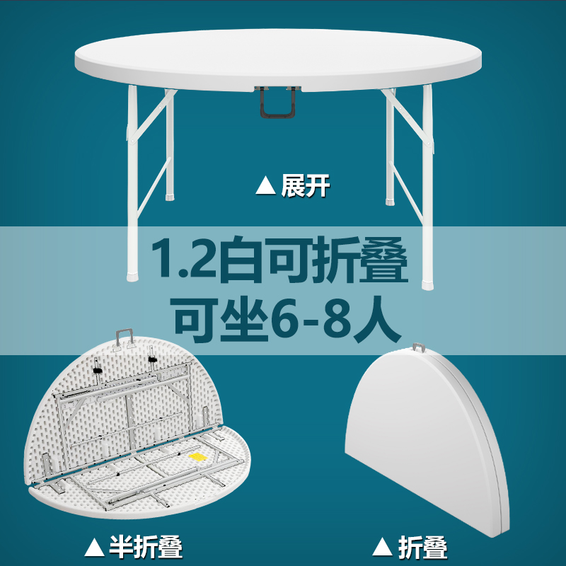 • 1.22m 반으로 접는 6-8인용 흰색 [다리 흰색] 업그레이드된 두꺼운 버전 ⚑ ☆