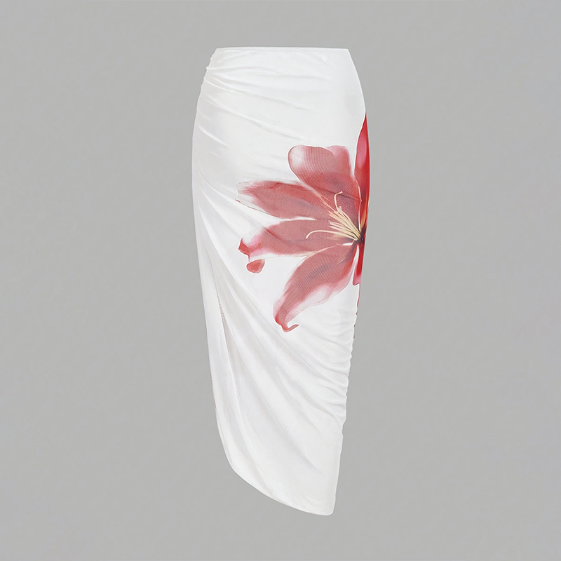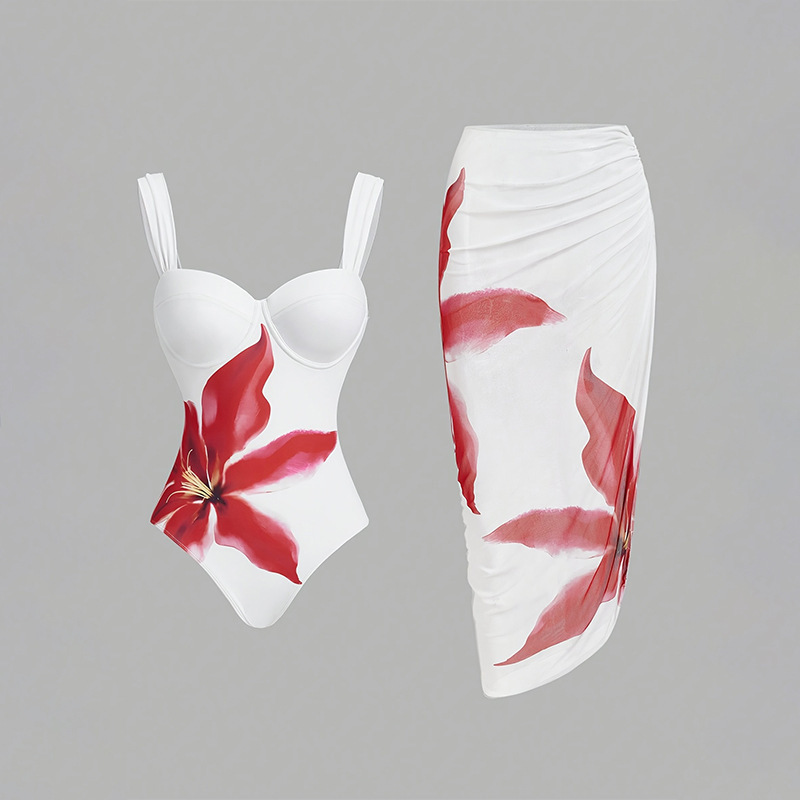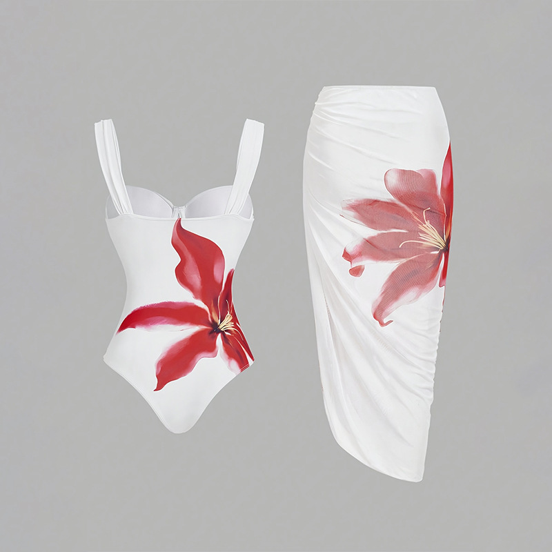 아마존 수영복 여성 2025 새로운 유럽과 미국의 포지셔닝 인쇄 섹시한 해변 스커트 비키니 온천 수영복 세트