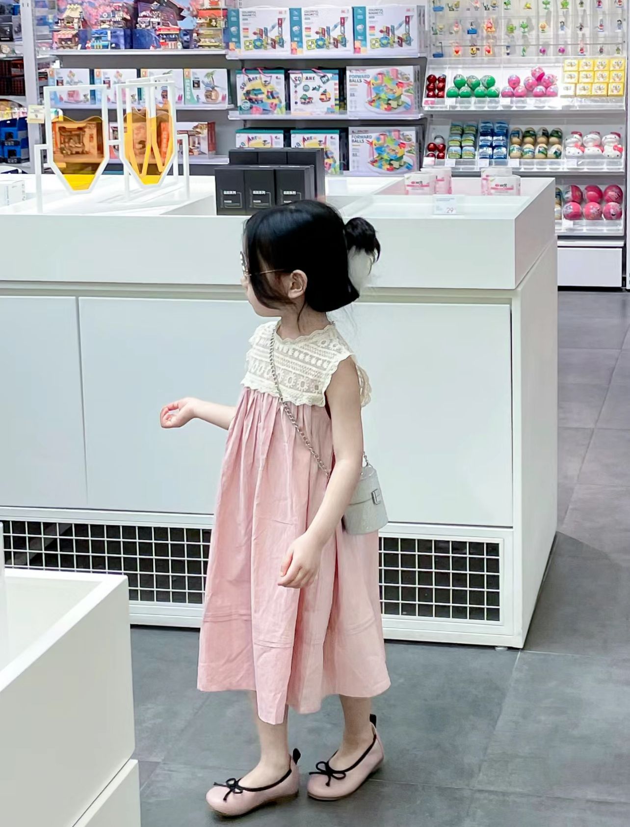 2025 년 여름 새로운 한국 스타일 아동복 소녀 유행 틈새 레이스 바느질 슬리브 스커트 세련된 조끼 스커트스토어 가기