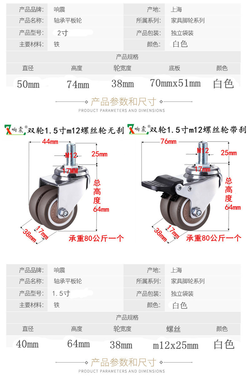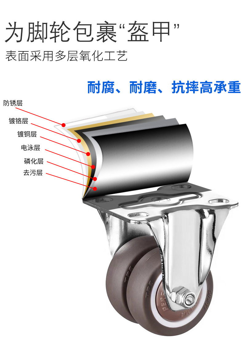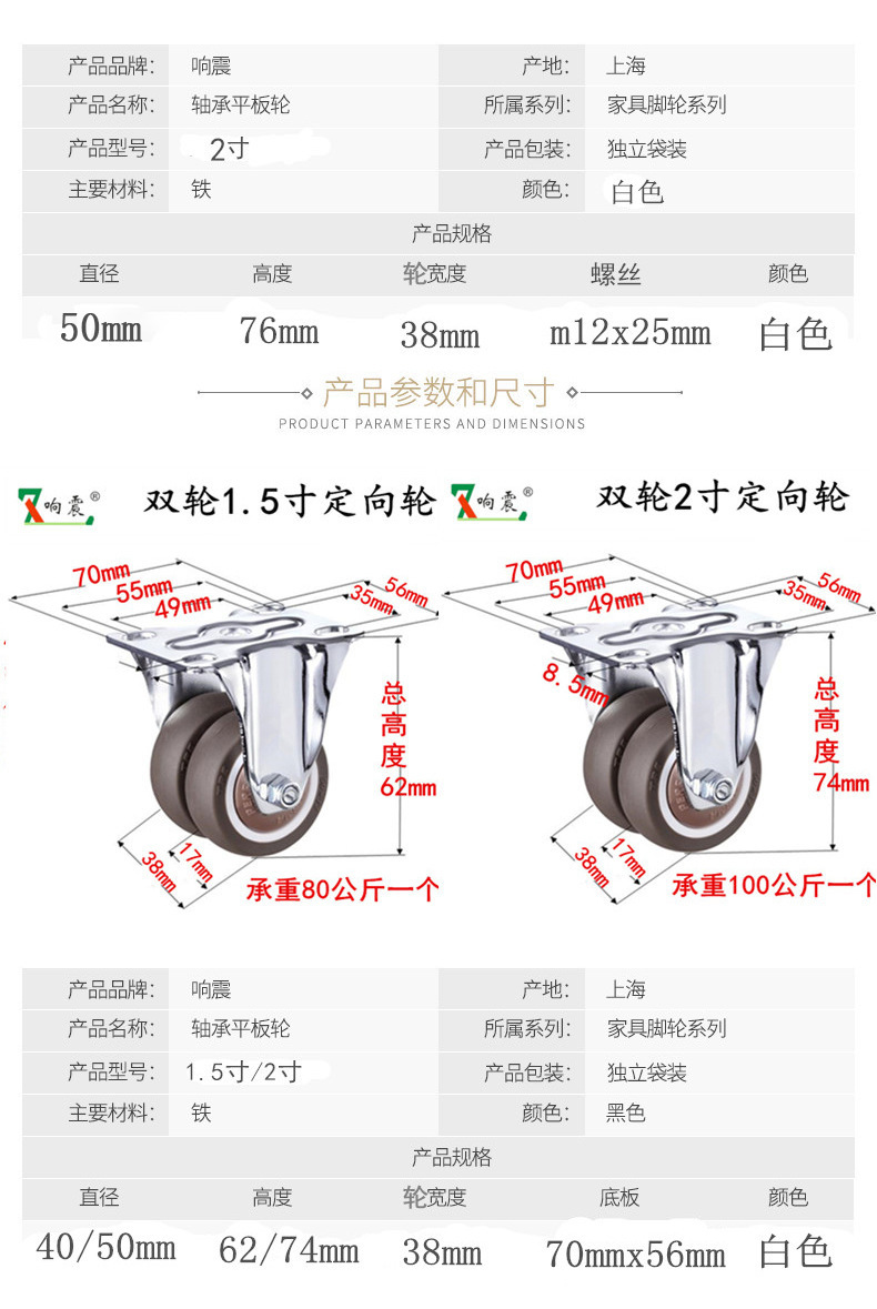 • 이중 휠 조합: 방향성 1.5inch개 + 플랫 브레이크 1.5inch개