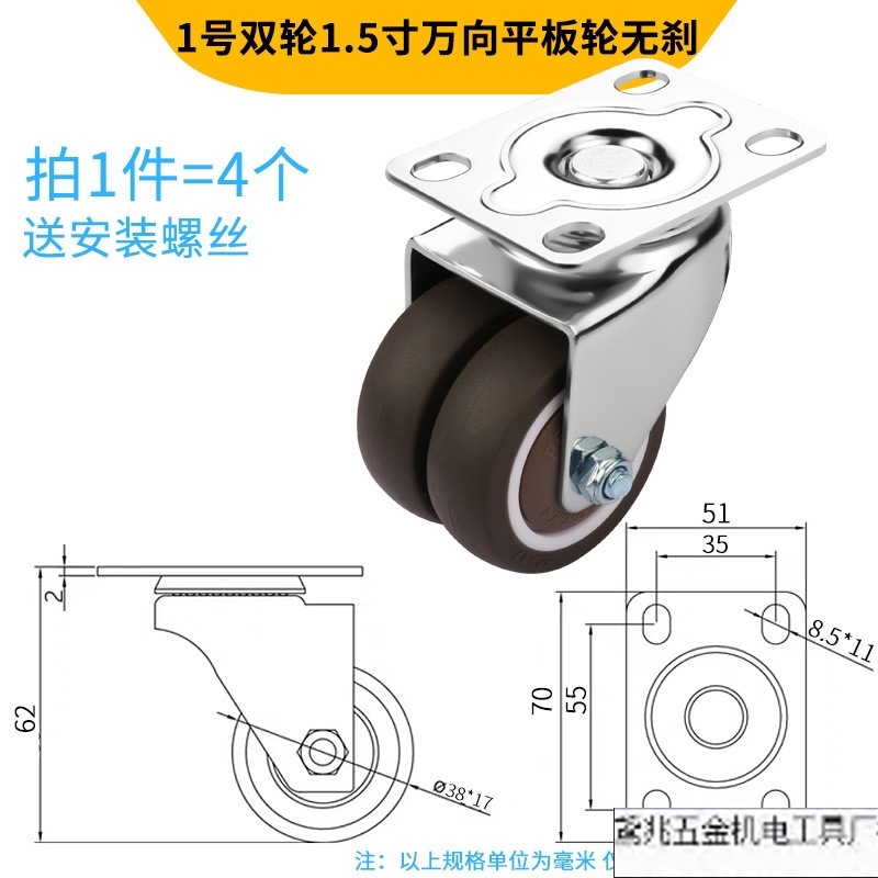 • 11번 이중 휠 1.5인치 범용 플랫 휠(브레이크 없음) 4개