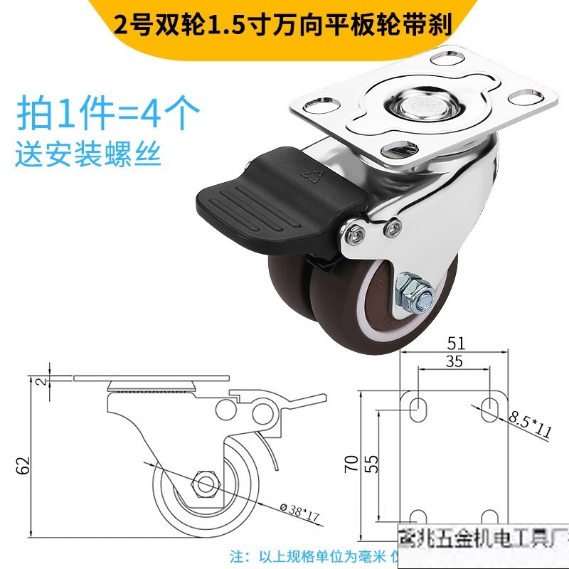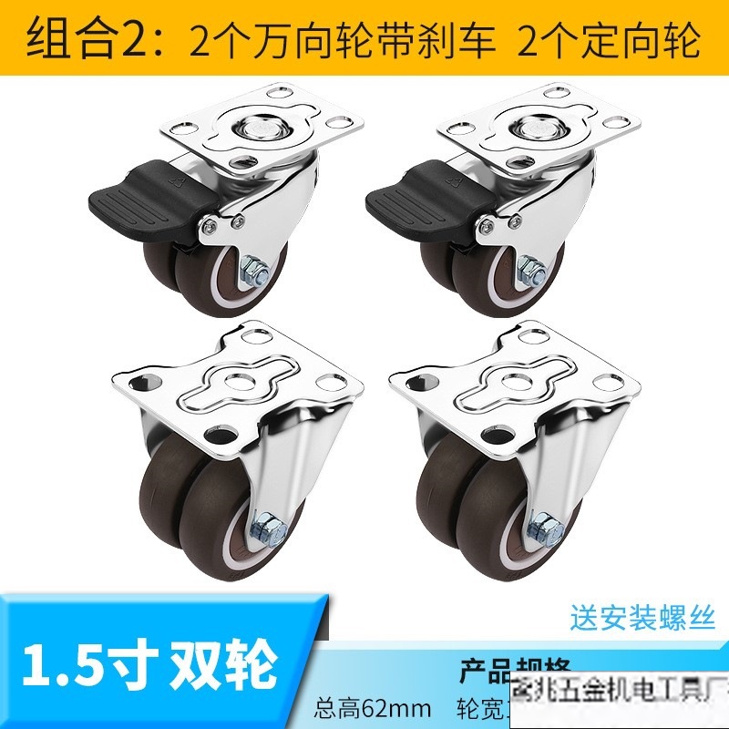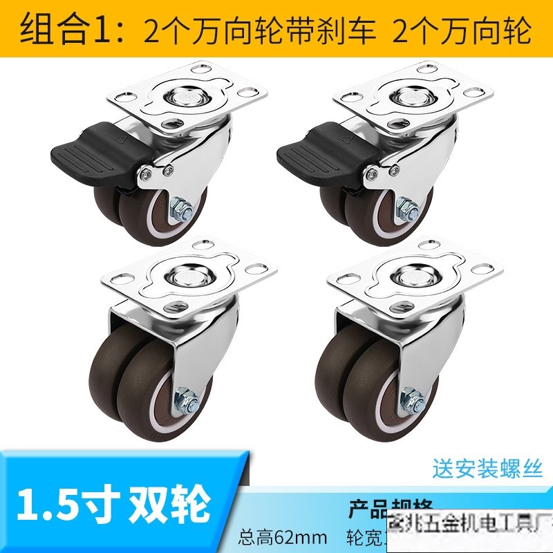 자동 캐스터 유니버설 휠 2 브레이크 1.5 인치 소형 고무 방향 휠 스티어링 휠 이동식 휠 풀리