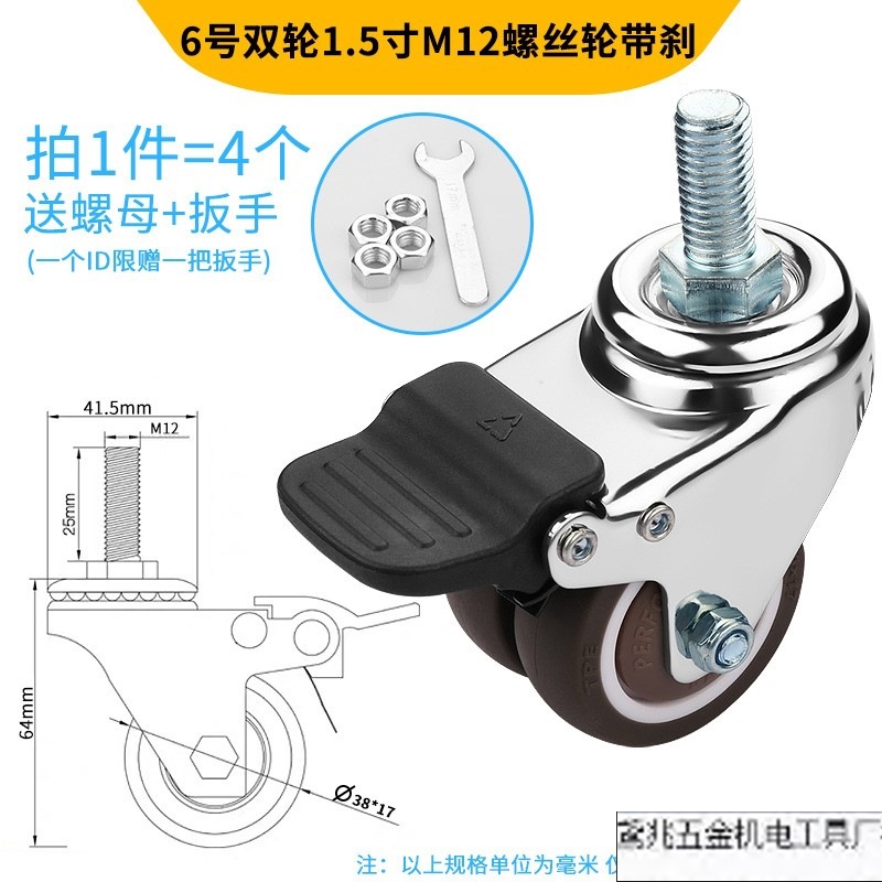 • 브레이크가 없는 13번 이중 휠 1.5inch m12 나사 휠 4개
