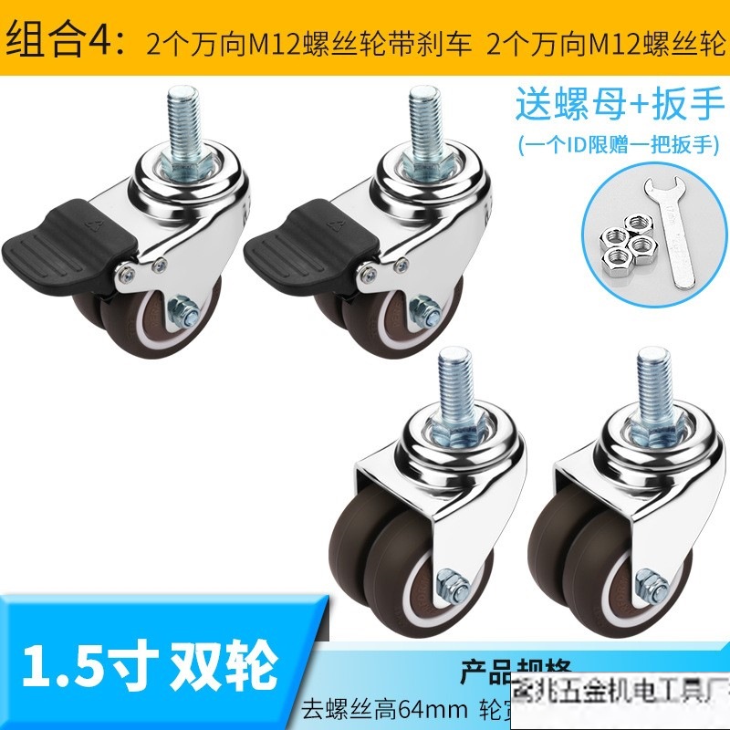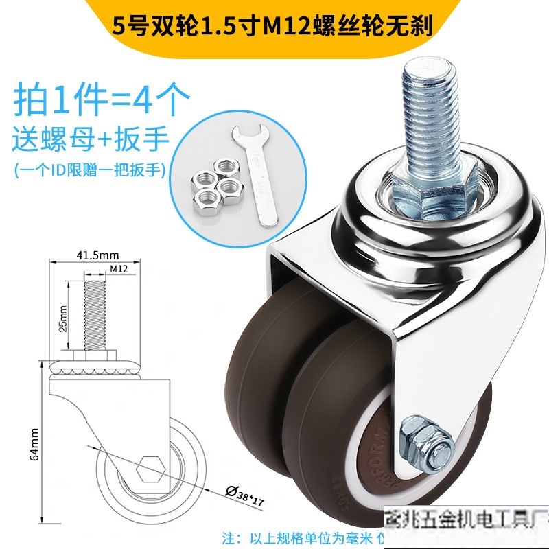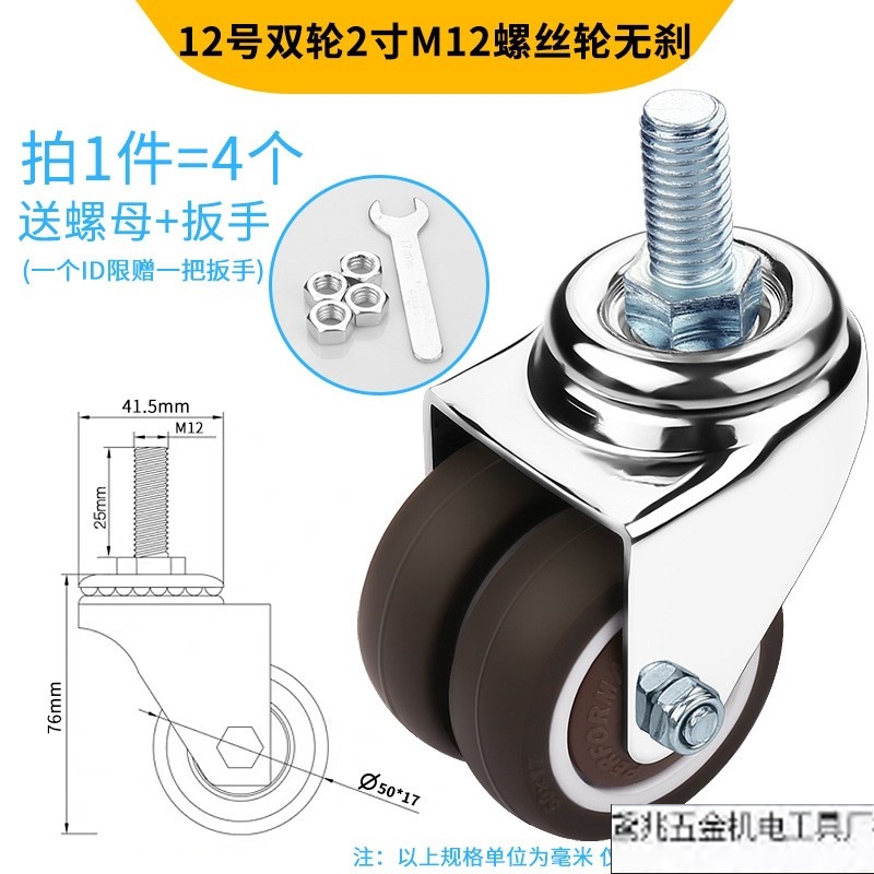 • 18번 이중 휠 2inch m12 나사 휠(브레이크 없음) 4개