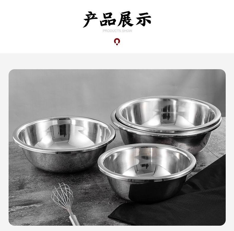 두꺼운 스테인레스 스틸 분지 야채 세척 분지 대형 분지 라운드 국수 비트 계란 조미료 분지 얼굴 씻기 발 씻기 분지 삶은 어류 분지