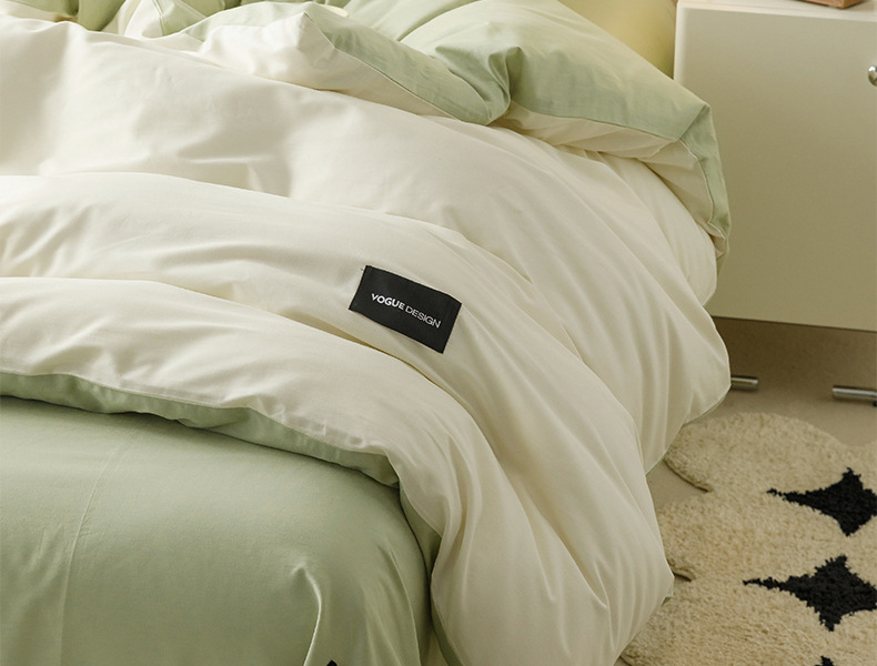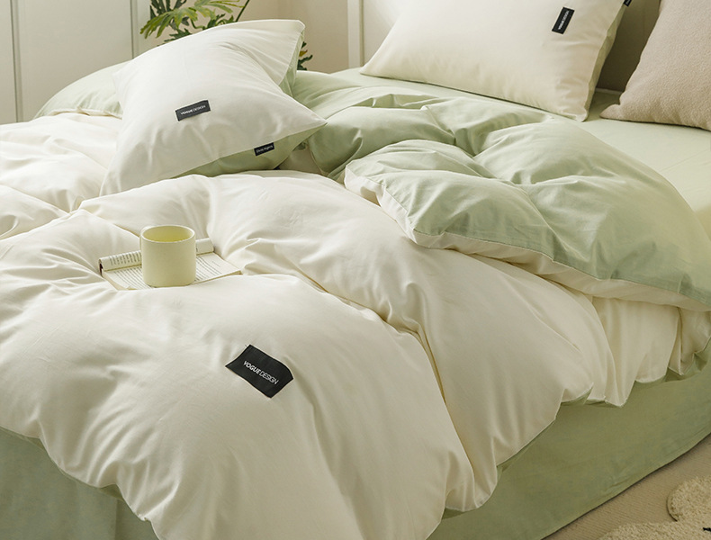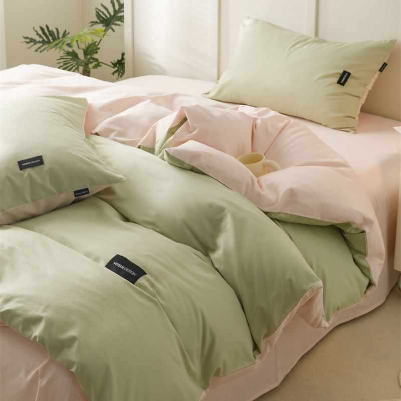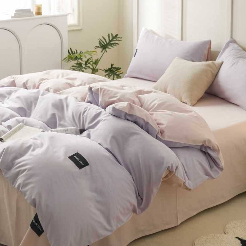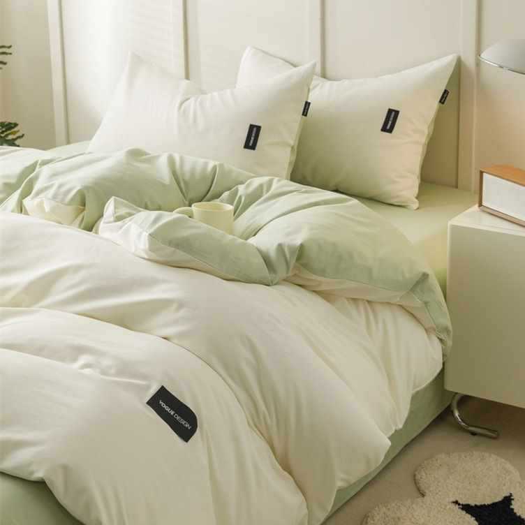 100 면 4 조각 가벼운 럭셔리 간단한 긴 스테이플 코튼 침대 시트 퀼트 커버 비 인쇄 스타일 학생 기숙사 3 종 세트 4스토어 가기