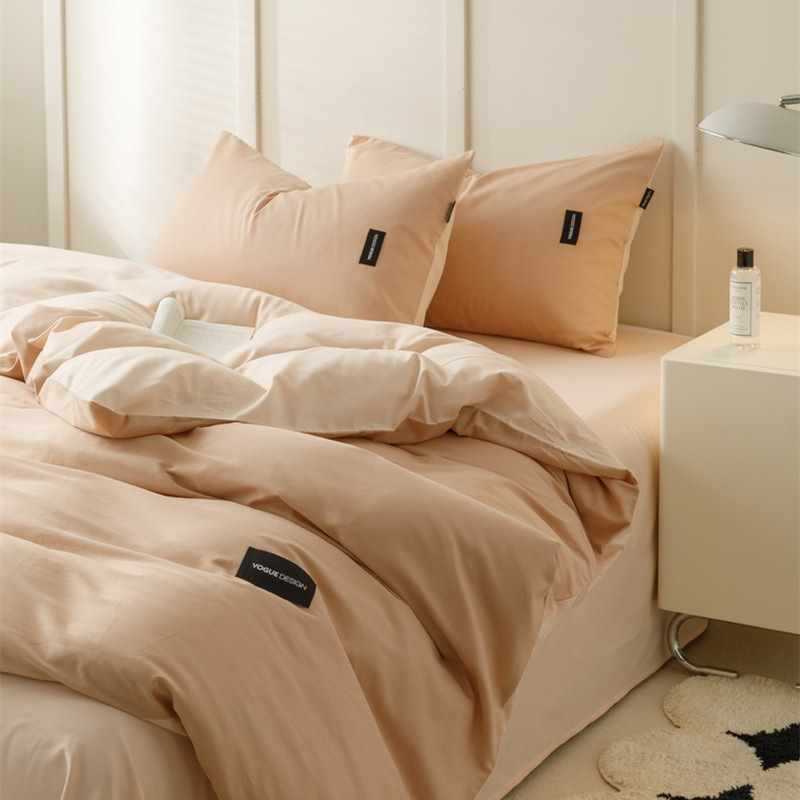 100 면 4 조각 가벼운 럭셔리 간단한 긴 스테이플 코튼 침대 시트 퀼트 커버 비 인쇄 스타일 학생 기숙사 3 종 세트 4