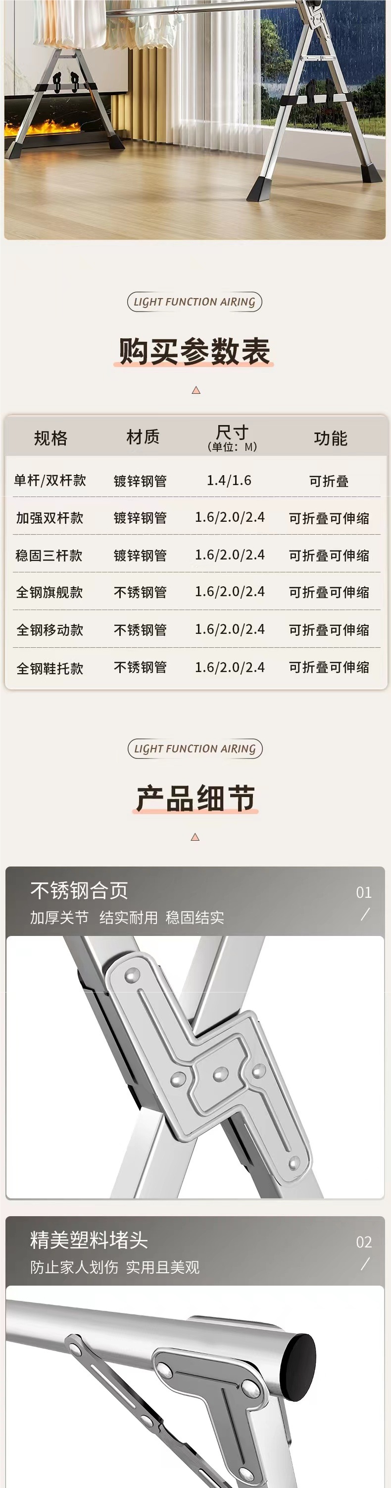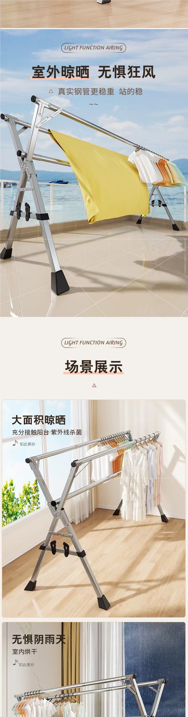 • 80%가 [업그레이드된 올스틸 신발 지지대] 두꺼운 3극 2.4m [방풍 후크 20개 + 12개]를 선택했습니다.