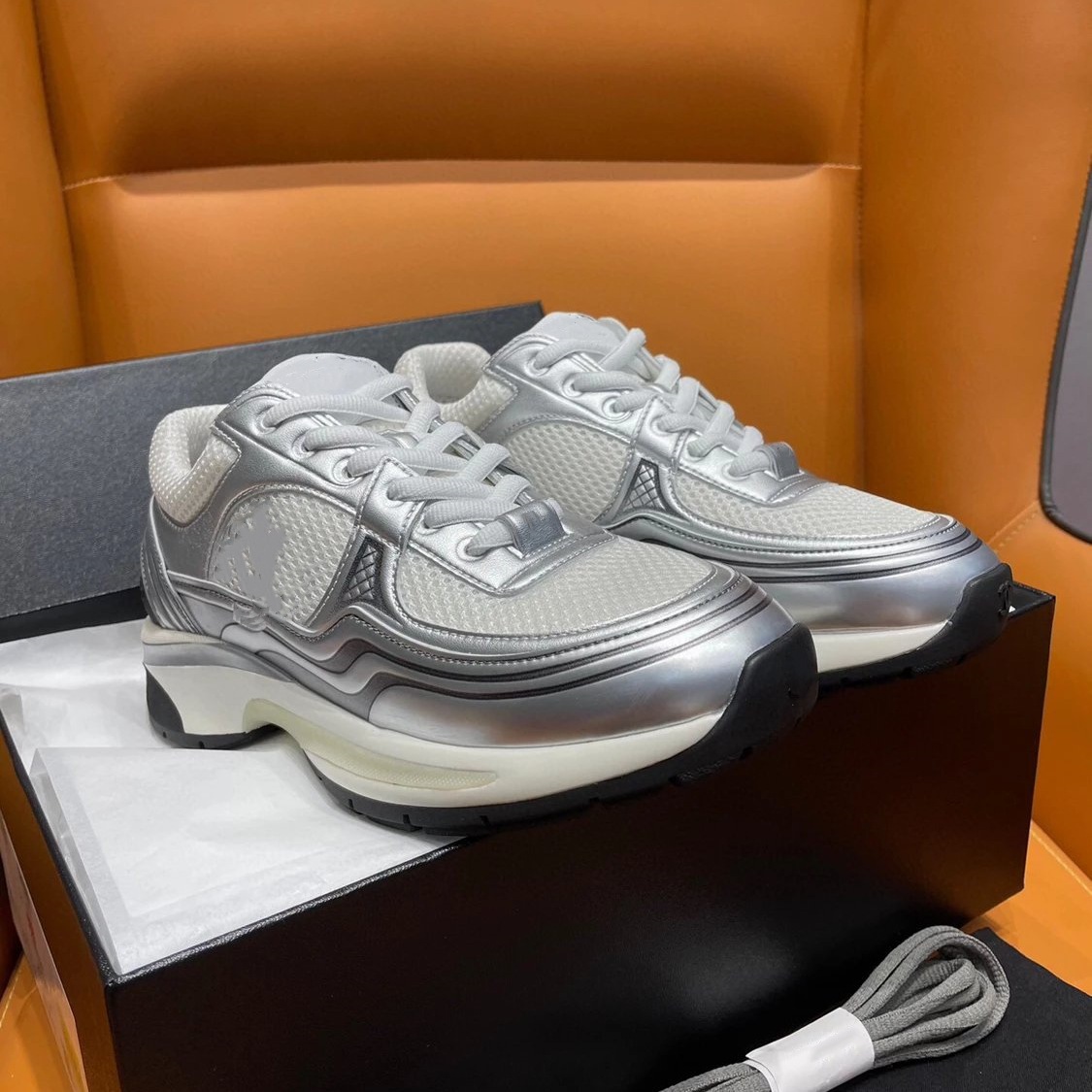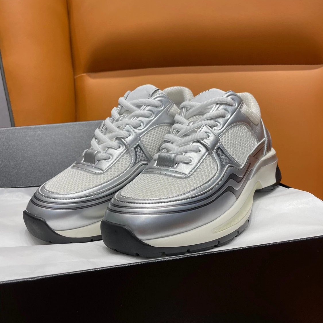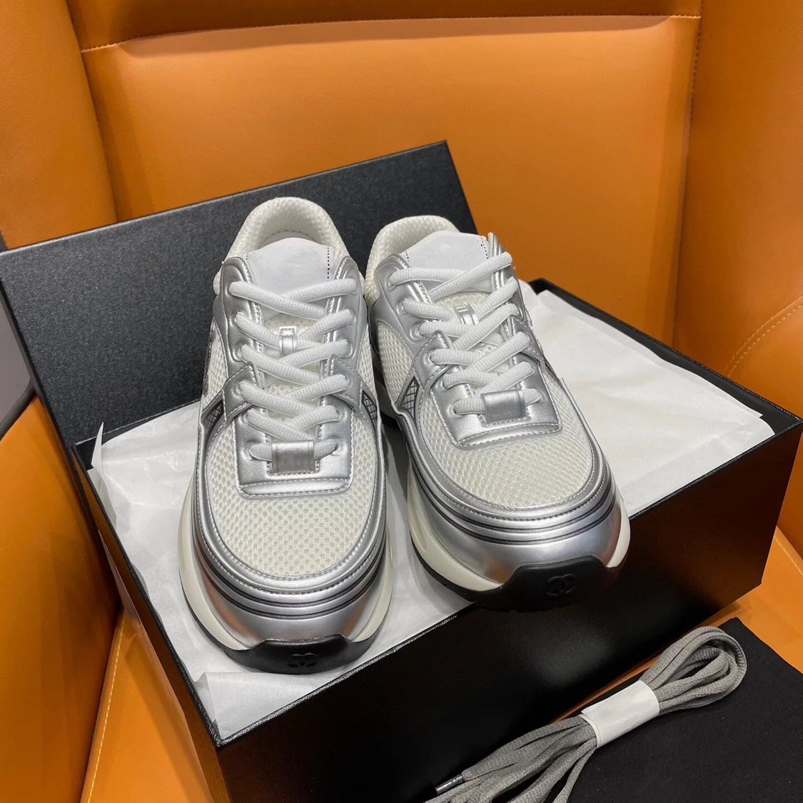 银色跑步鞋女2023季新款小香风银角大王运动鞋网面透气增高老爹鞋