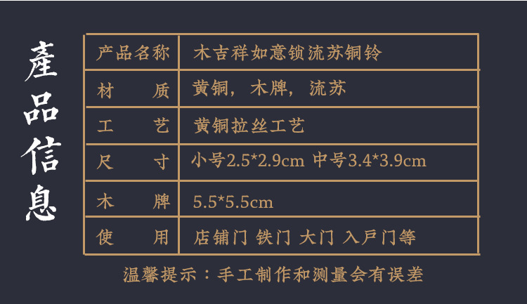 순수 구리 길조 Ruyi 잠금 술 작은 벨 금속 나무 브랜드 바람 벨 황동 홈 샵 매달려 자동차 교수형 벨 레드스토어 가기