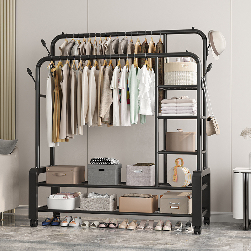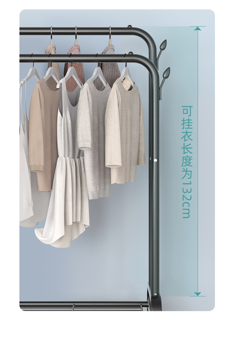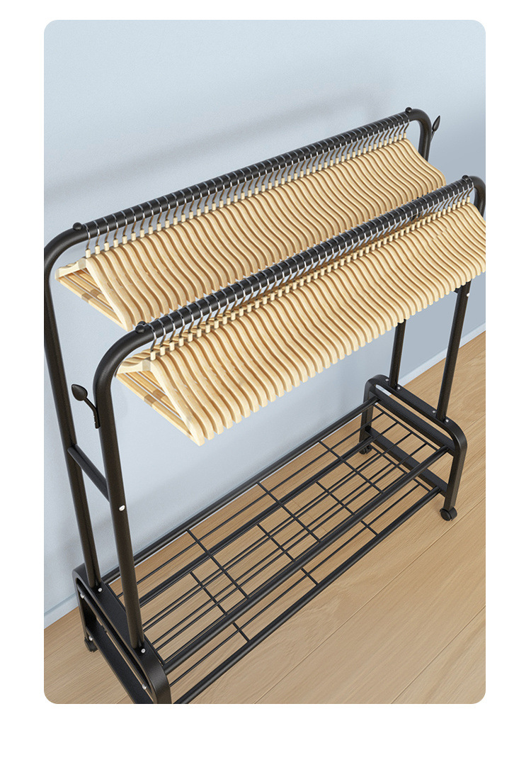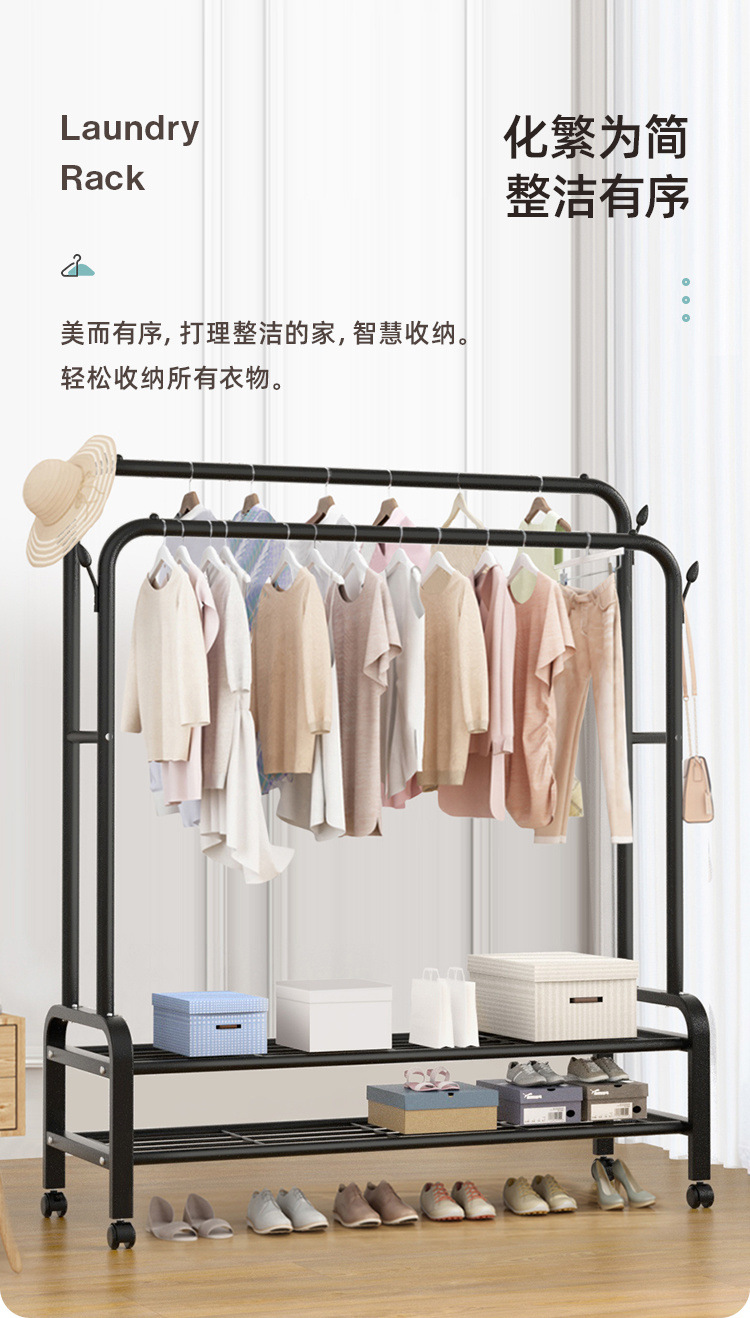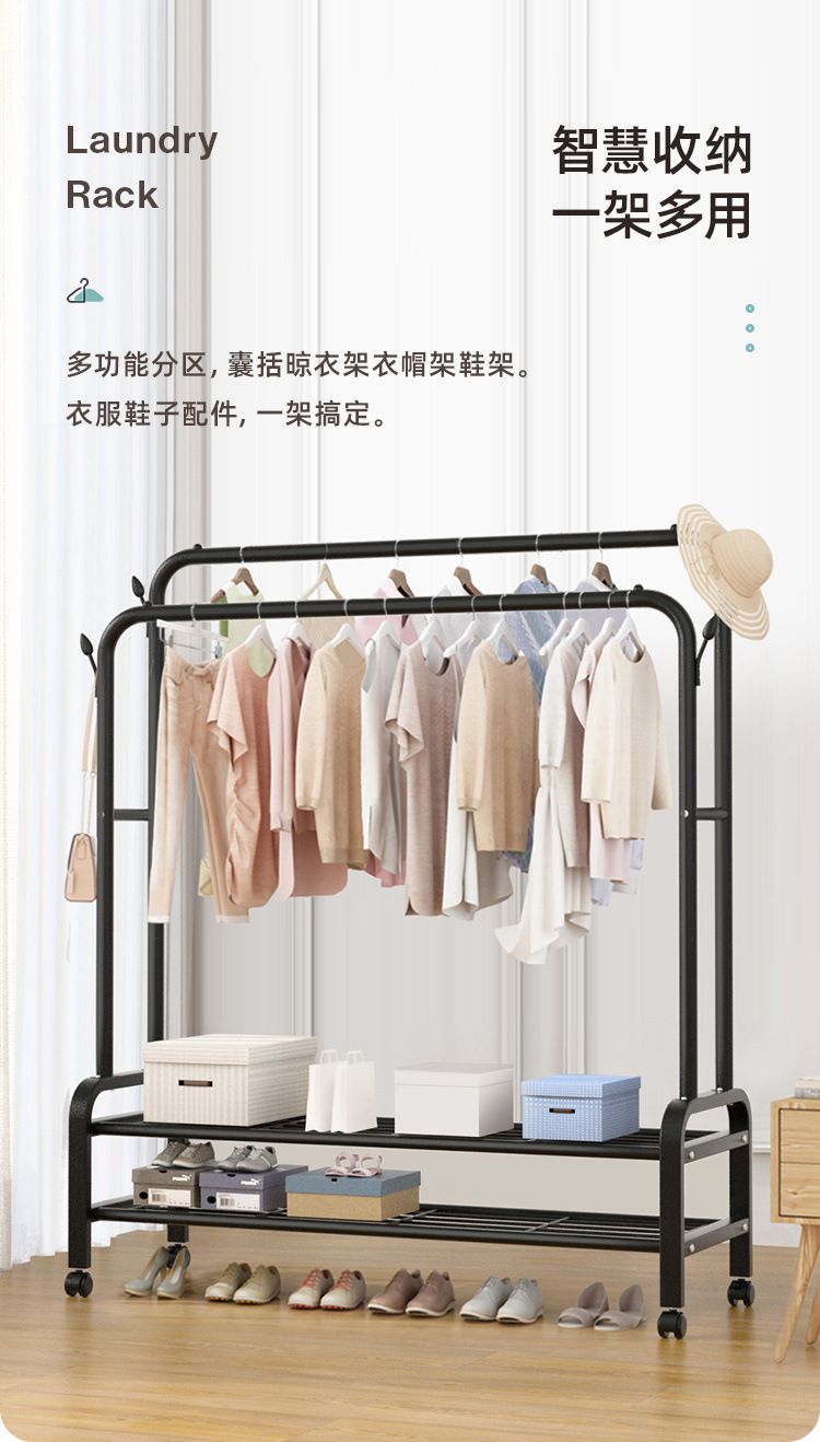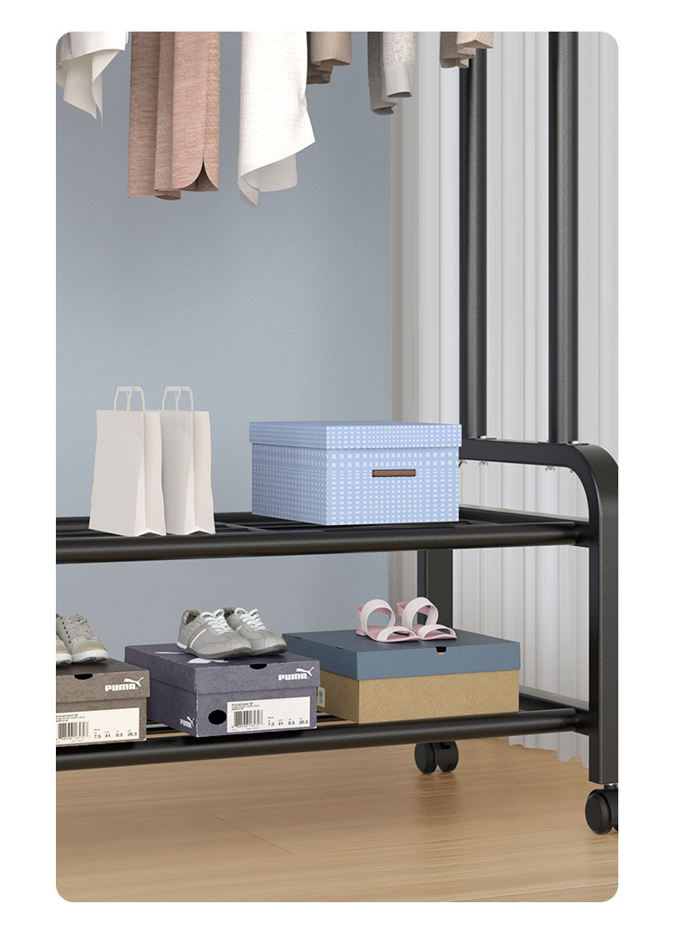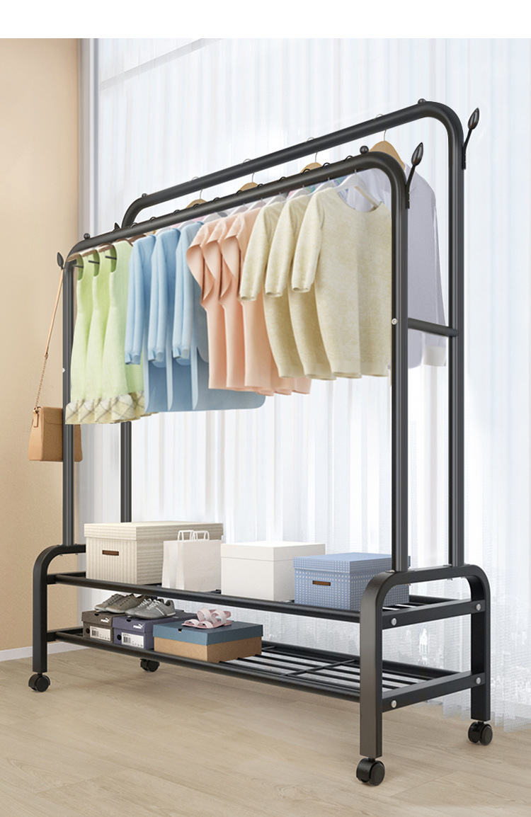 더블로드 옷걸이 바닥 수직 옷걸이 더블 행 건조 랙 실내 코트 랙 이동식 건조 랙