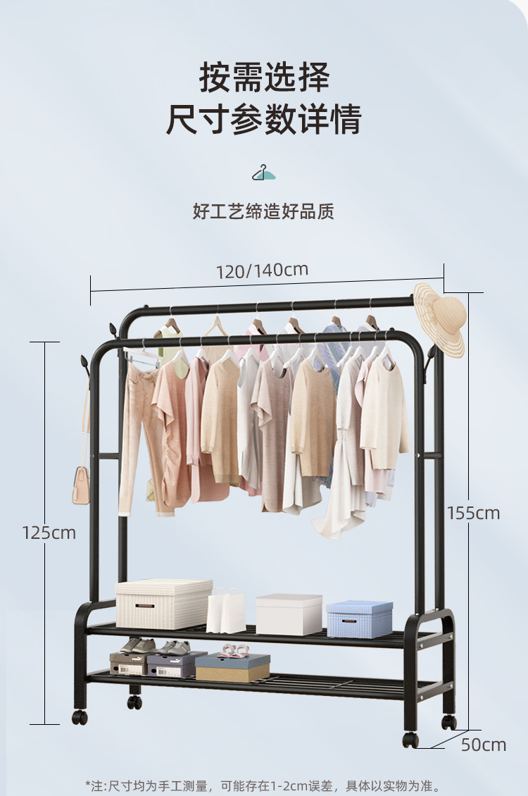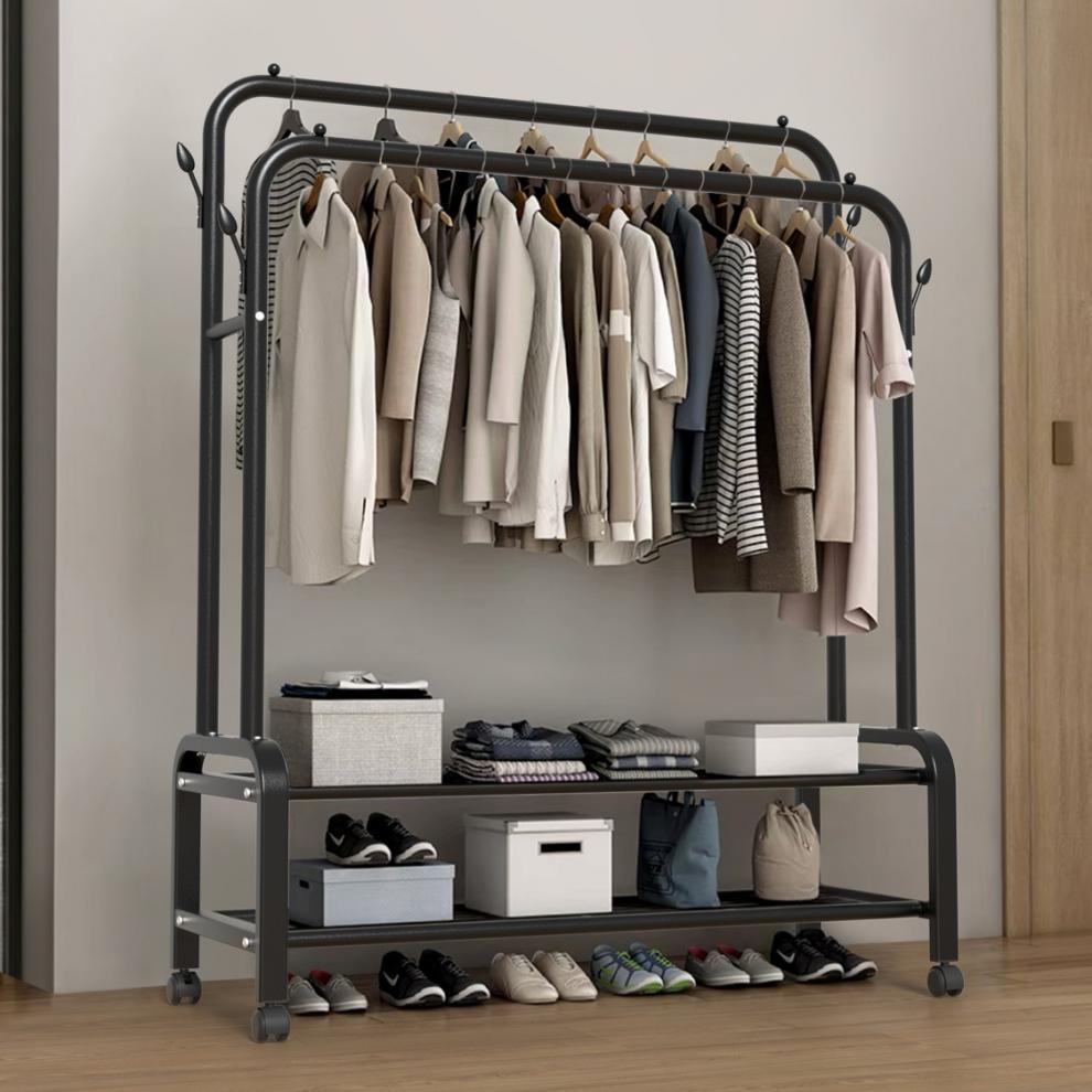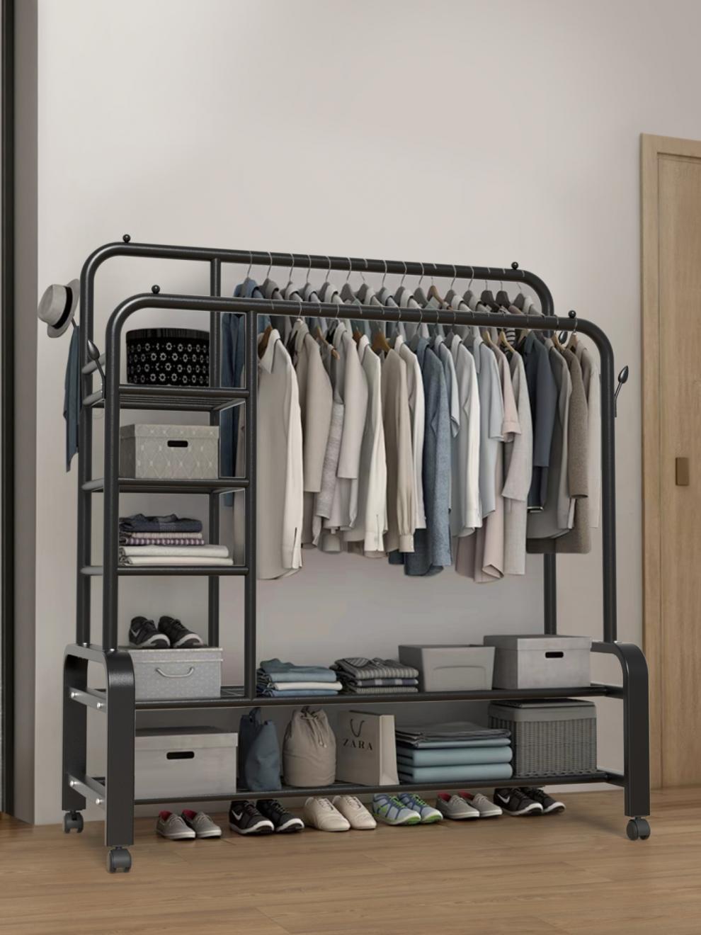 더블로드 옷걸이 바닥 수직 옷걸이 더블 행 건조 랙 실내 코트 랙 이동식 건조 랙스토어 가기