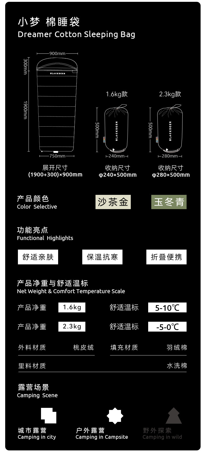 BLACKDEER 블랙 디어 리틀 드림 슬리핑 백 성인 야외 겨울 캠핑 성인 추위 방지 다운 코튼