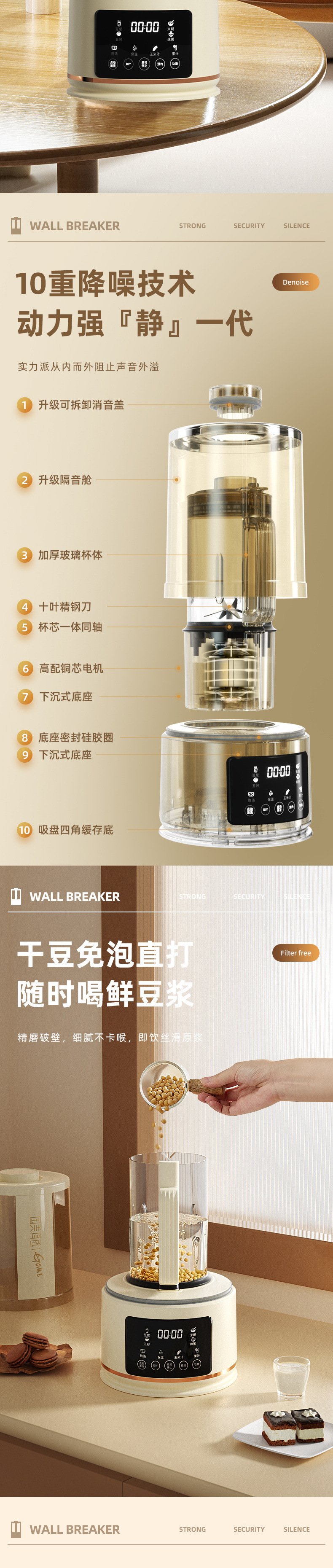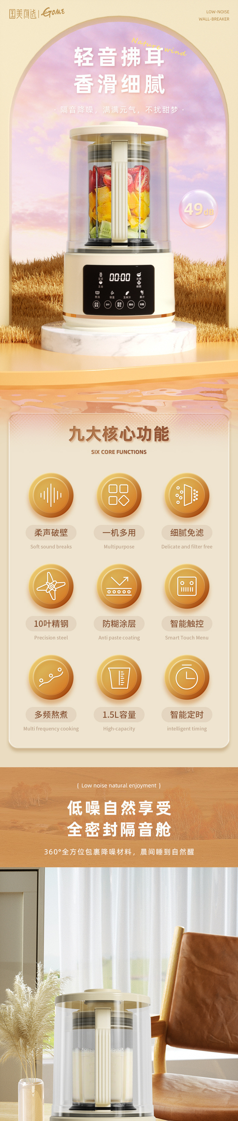 Gome Zhenxuan 부드러운 사운드 벽 속보 기계 가정용 상업용 자동 작은 콩 우유 기계 조용한 다기능 주스 표현 기계